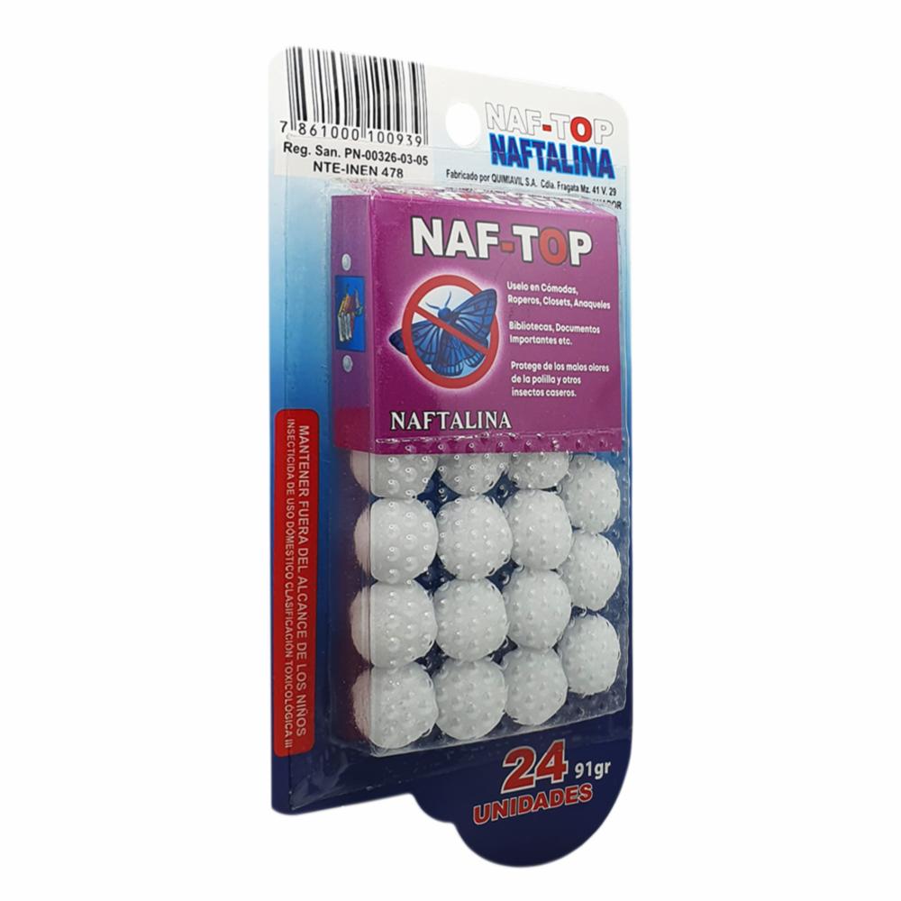 • Naftalina Blanca NAF-TOP. Protege tu ropa y pertenencias de forma efectiva con NAF-TOP, un aliado contra polillas y otros insectos. Ideal para clósets, roperos, cómodas, bibliotecas y almacenes de documentos importantes