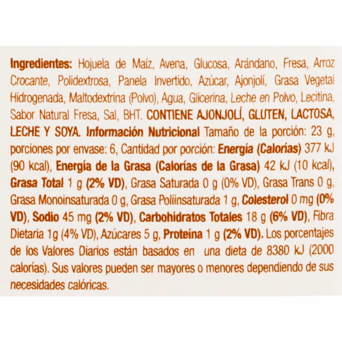 - Barra energética De Cereales Con Fresa Y Arándano 100% Ingredientes Naturales