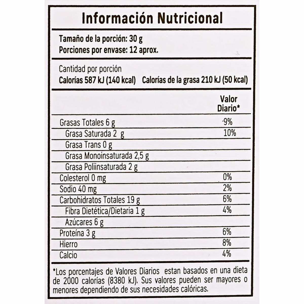 - Granola a base de avena, arroz crocante, quinua, almendra coco y pasas 100% ingredientes naturales