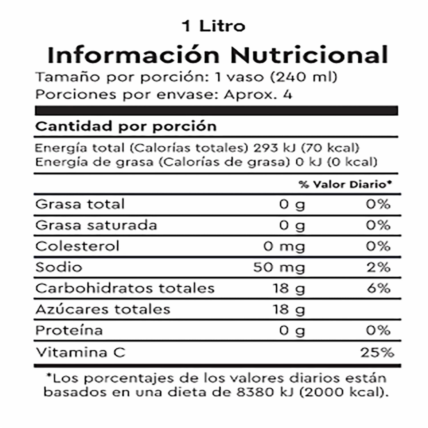 Con pulpa natural de fruta No es alto en azúcar Fortificado con vitaminas A, C, D y Zinc, para ayudar al sistema inmune No contiene conservantes, ni colorantes, ni saborizantes artificiales Con pulpa natural de fruta