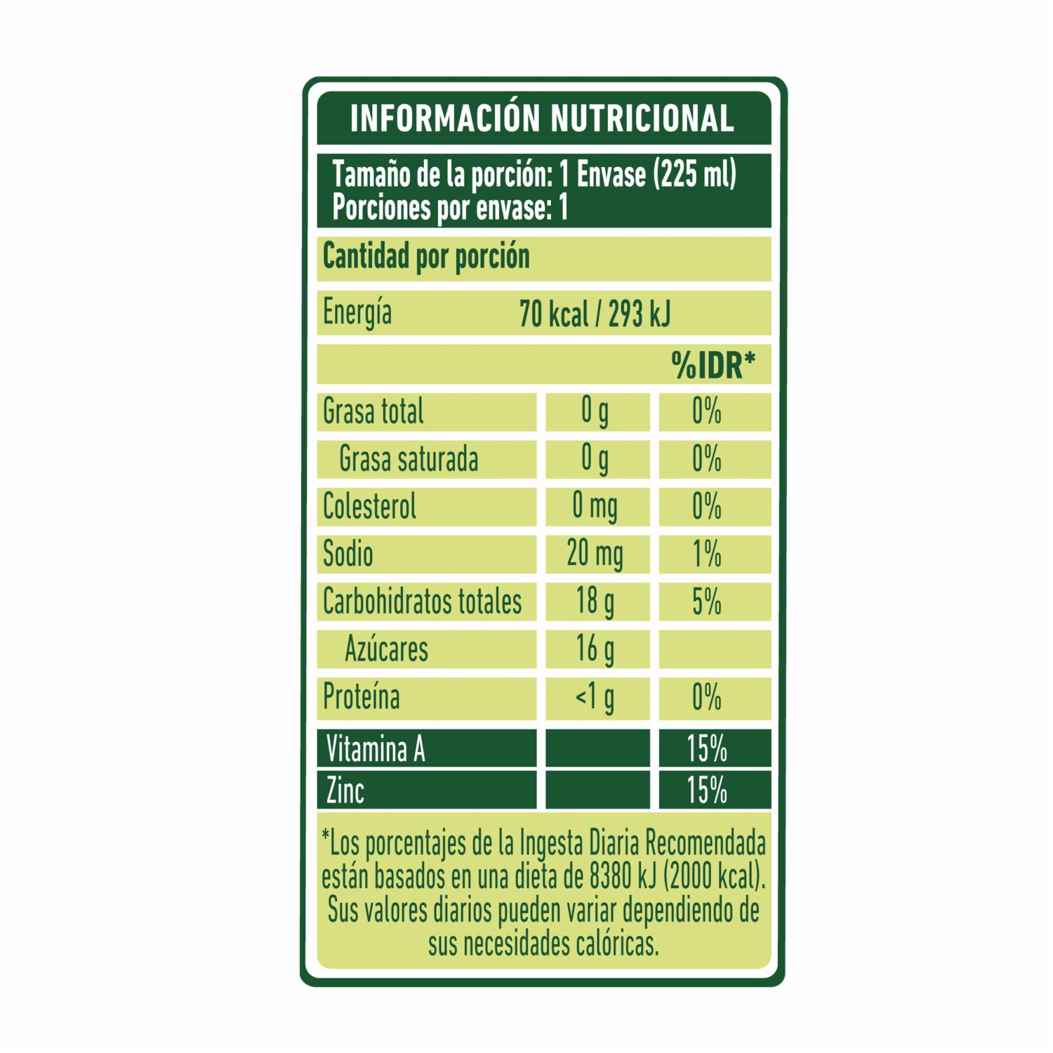 NATURA® Néctar Manzana deliciosa bebida hecha con un alto contenido de fruta real y vitaminas A, C y Zinc. Sin conservantes añadidos