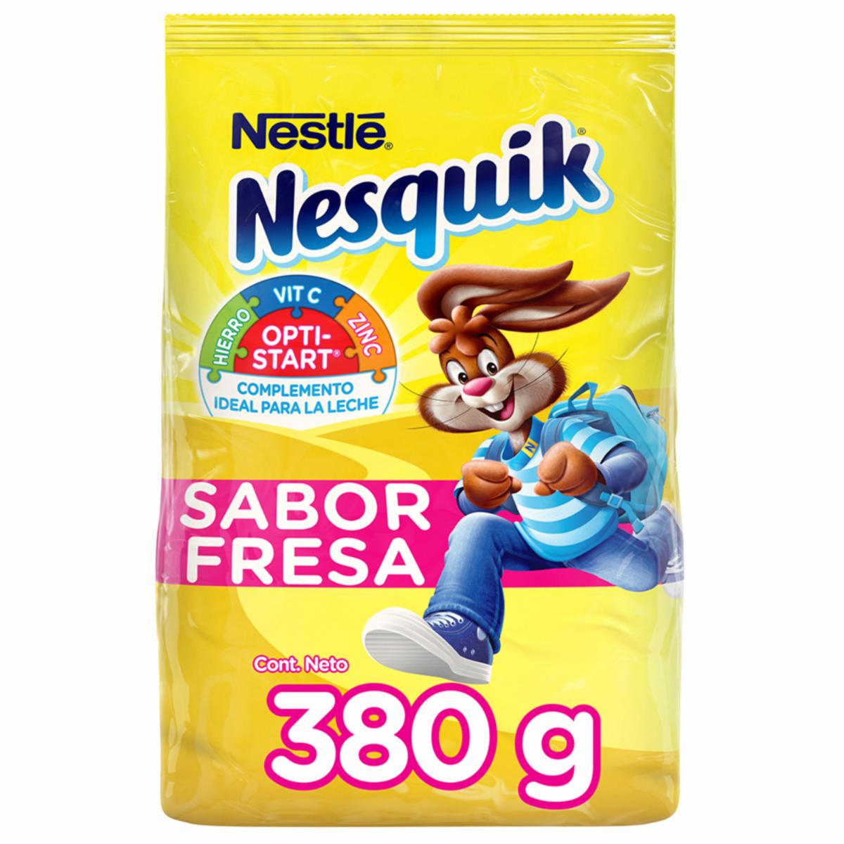 - Saborizante para leche Nesquik Fresa, es complemento ideal de la leche en el desayuno de tus hijos ya que aporta aporta hierro, Vitamina B y zinc, además de asegurar un exquisito sabor