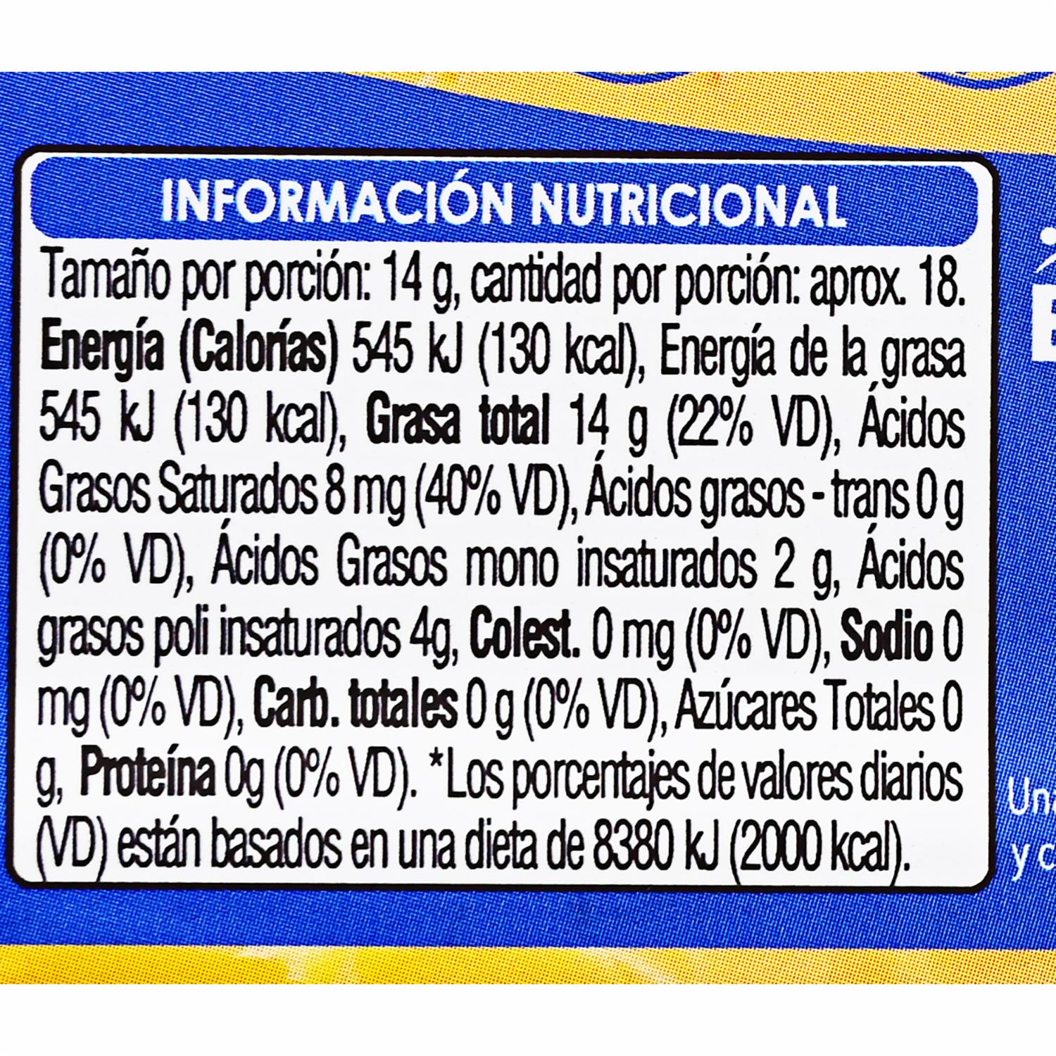 - Mezola de aceites vegetales sabor a mantequilla libre de lácteos y sal. Elaborado con aceite de coco