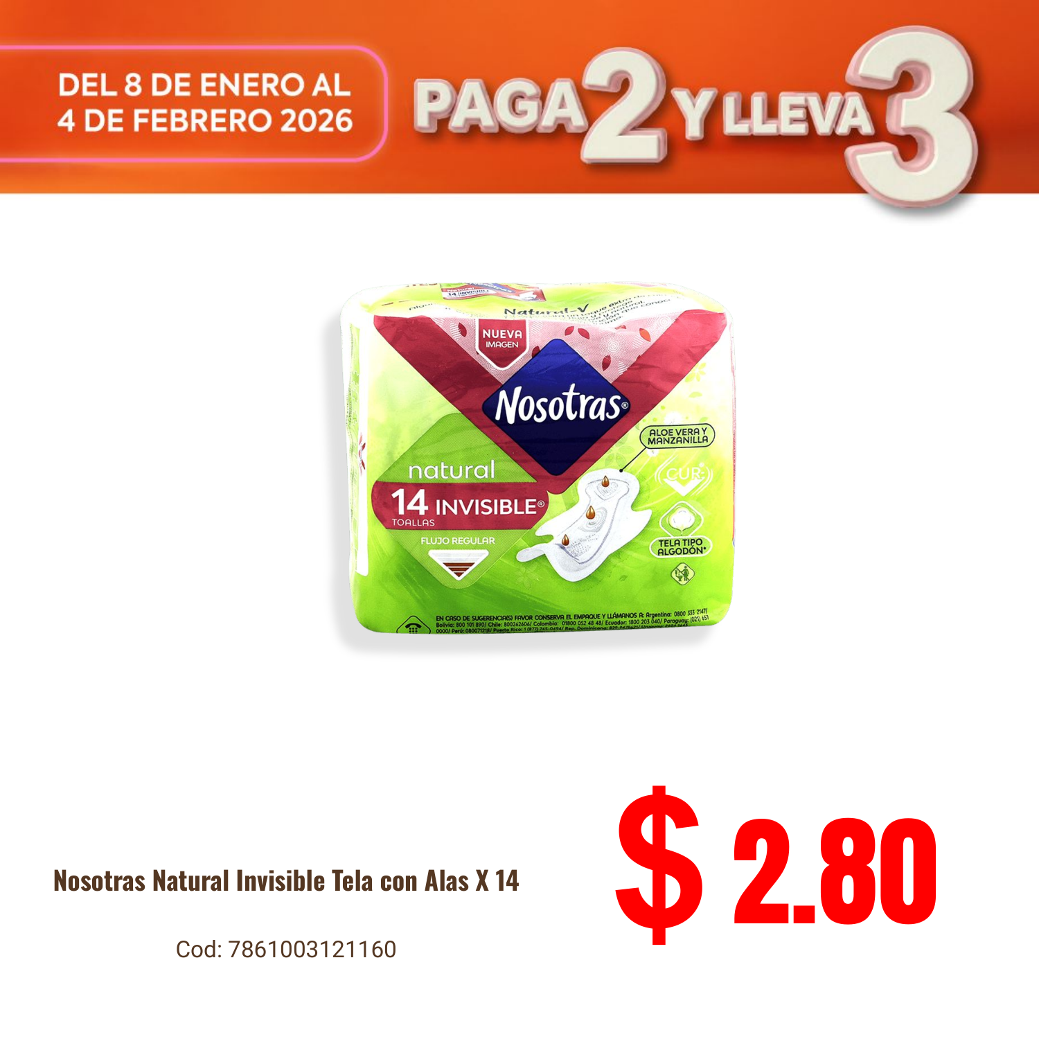 Nosotras Natural Invisible Tela con Alas X 14. Disponible en nuestros locales. Precio y stock pueden variar según la tienda.