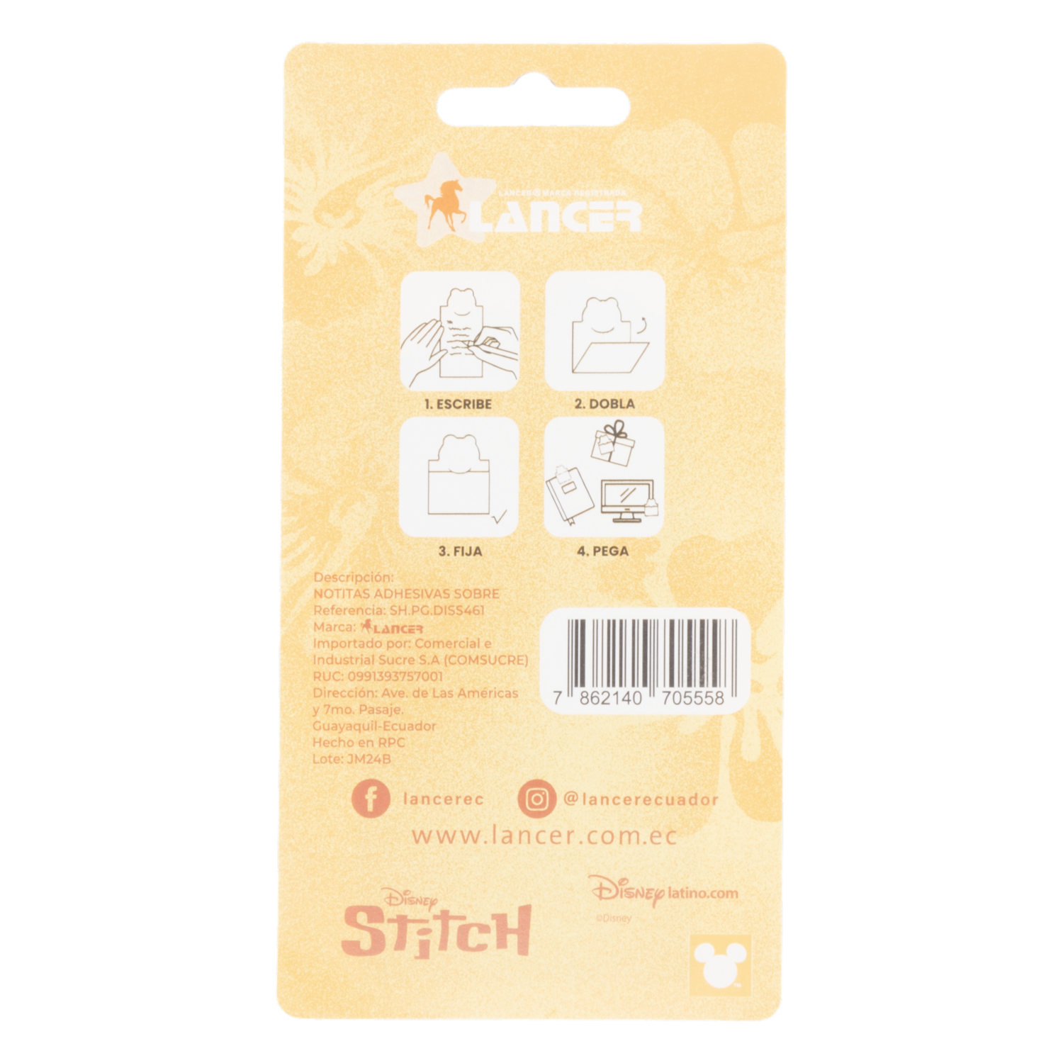 - Notas Adhesivas Sobre Stitch DISNEY son ideales para escribir recordatorios y mensajes con un diseño divertido del personaje Stitch. Su adhesivo permite fácil colocación y remoción sin dañar las superficies. Perfectas para uso escolar, oficina o en casa.
