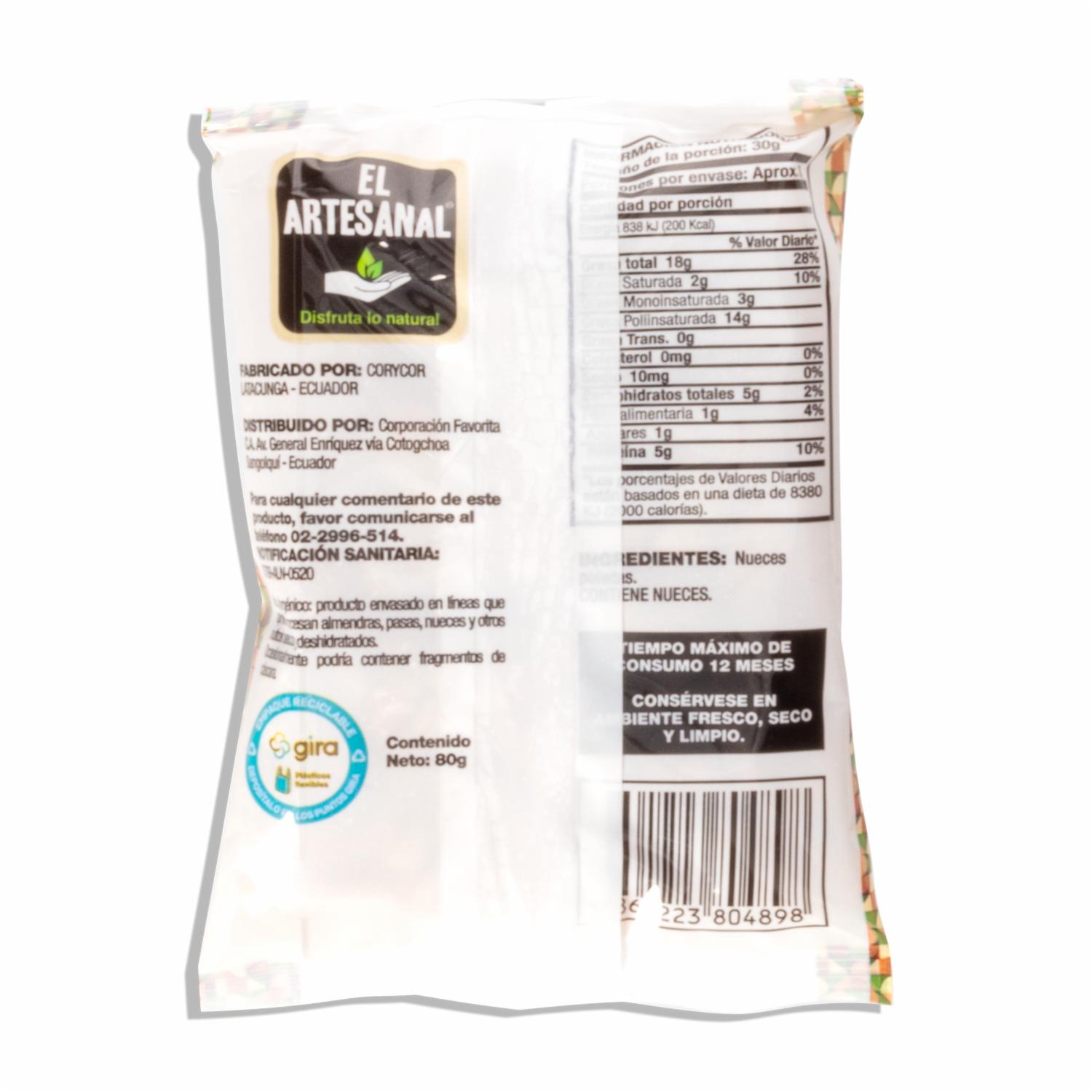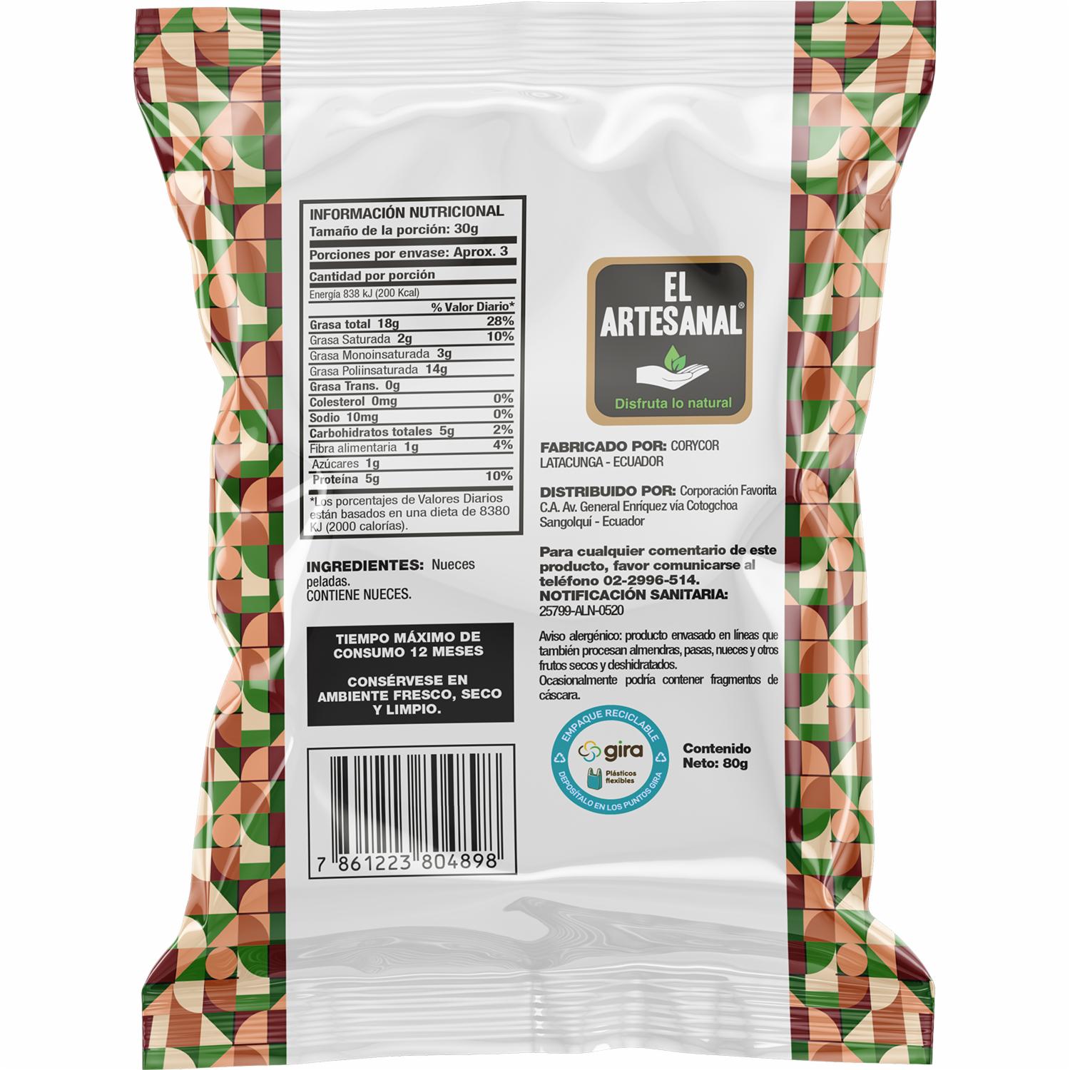 Nueces Peladas 100% Natural EL ARTESANAL 80G