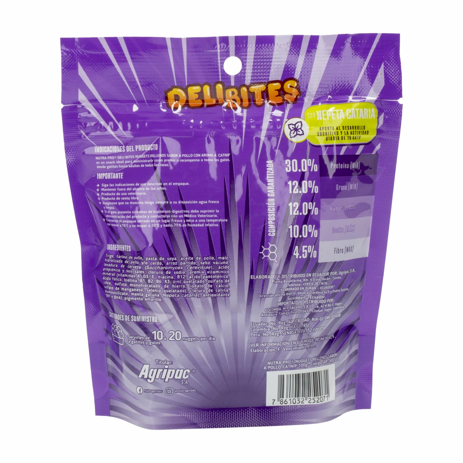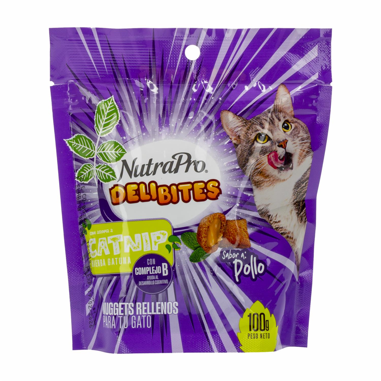 - Los Nuggets para gato de pollo con catnip de NutraPro Delibites son un delicioso y saludable snack diseñado especialmente para satisfacer los instintos naturales de tu felino. Con un sabor irresistible, estos nuggets son perfectos como recompensa o simplemente como un capricho entre comidas