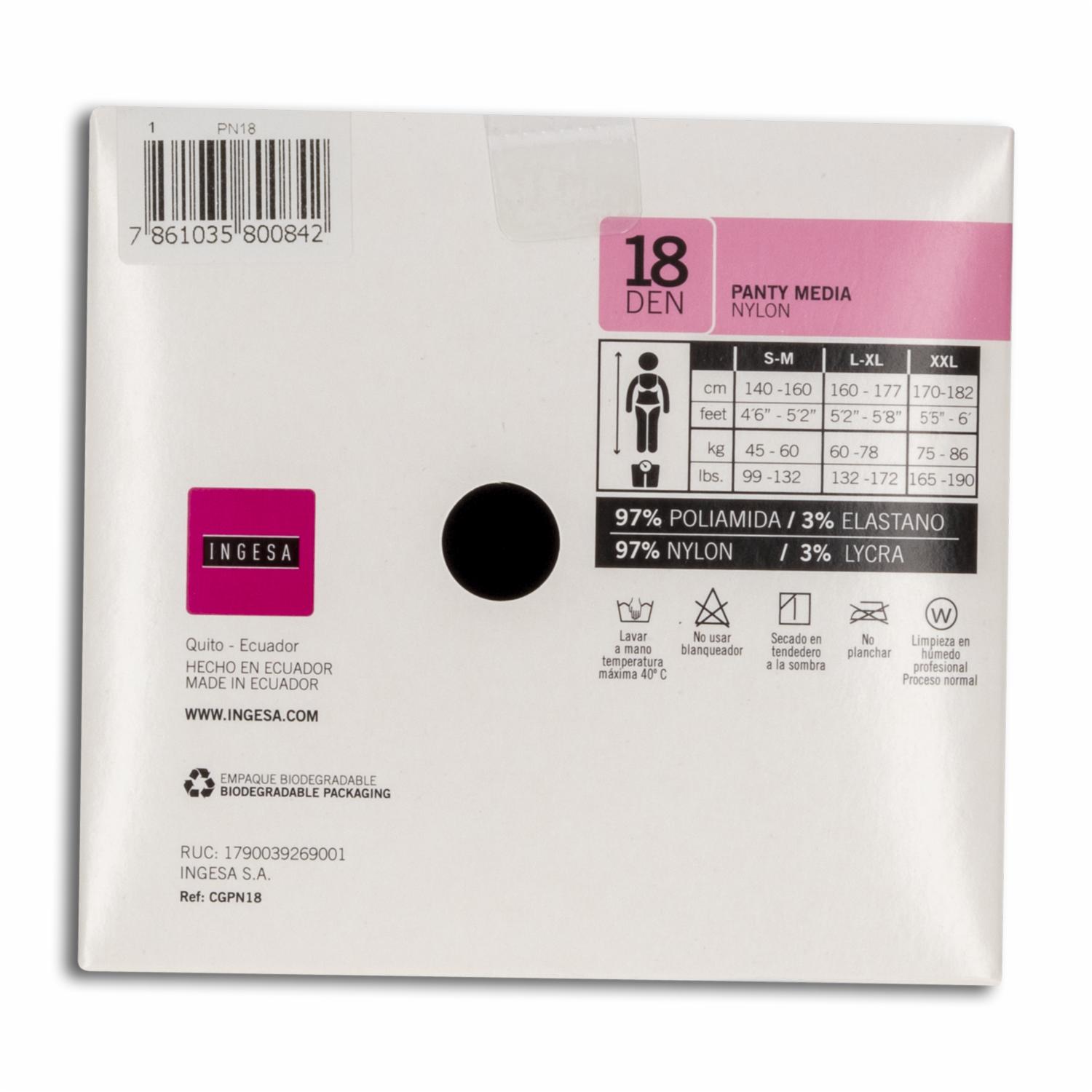 Panty Media Nylon Negras 18 Den INGESA – INGESA. Disponible en nuestros locales. Precio y stock pueden variar según la tienda.