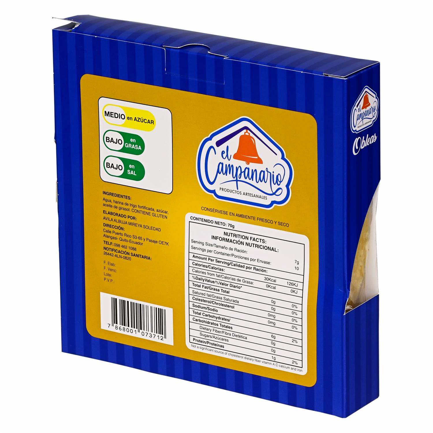 consultando preciosObleas Clásicas EL CAMPANARIO 70 g – EL CAMPANARIO. Disponible en nuestros locales. Precio y stock pueden variar según la tienda.