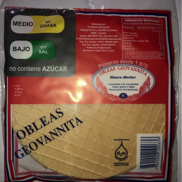 Obleas Horneadas HOSTIAS GEOVANNITA x 8 Uds
