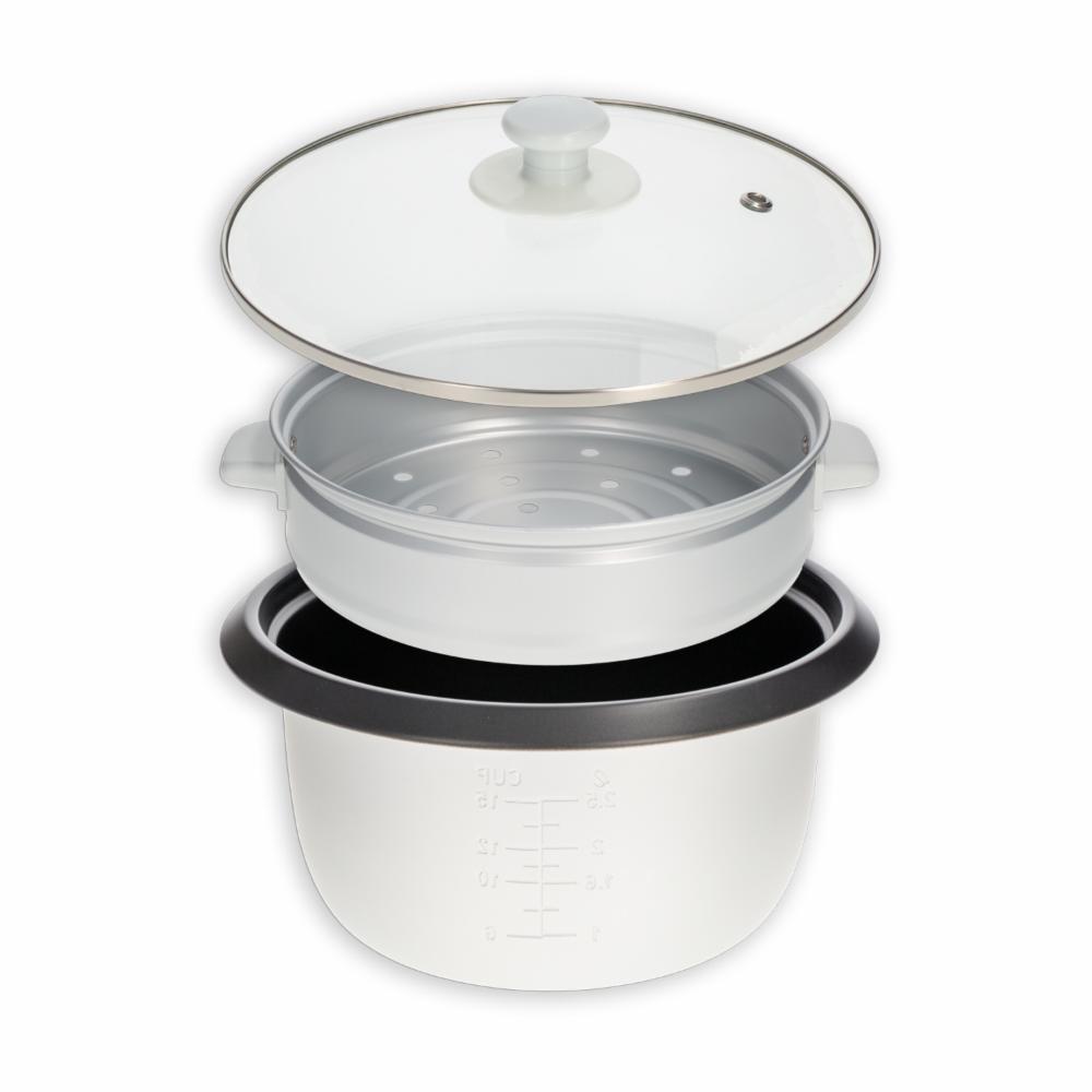 • Asas frías al tacto: Para un manejo seguro y cómodo mientras cocinas. Soporte anti-deslizante: Mantiene la arrocera estable durante su uso