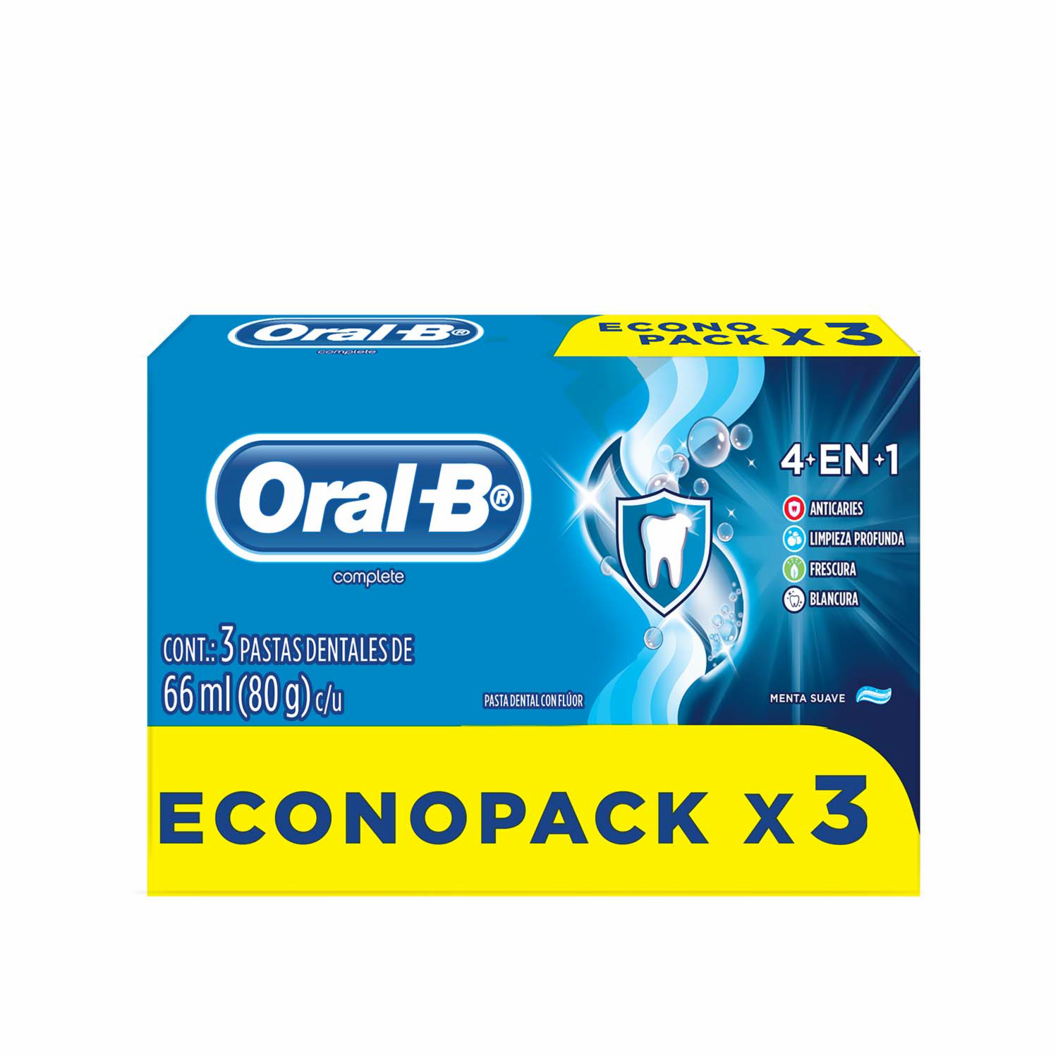 Pasta Dental Complete 4En1 ORAL-B 3 X 66 Ml – ORAL B. Disponible en nuestros locales. Precio y stock pueden variar según la tienda.