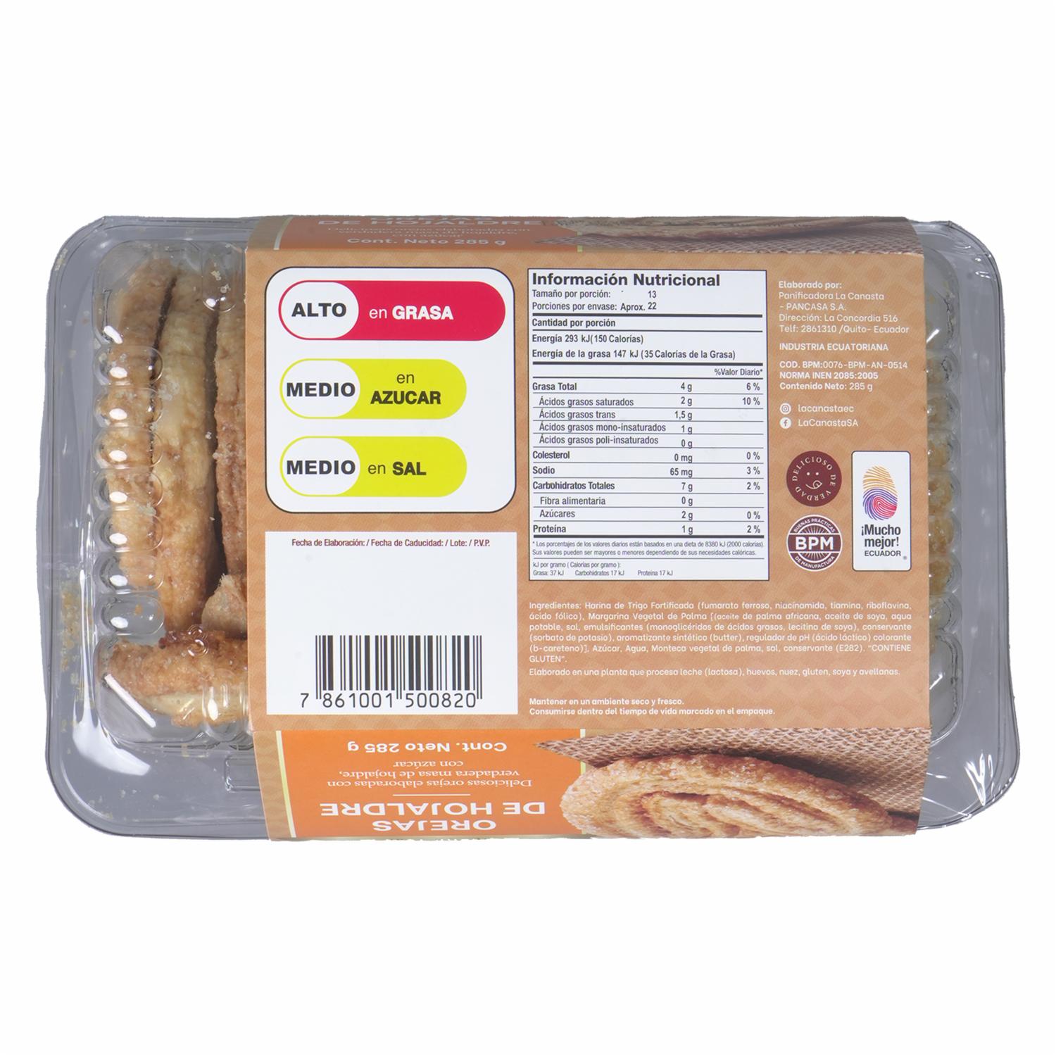 Orejas Empacadas LA CANASTA 285 G – LA CANASTA. Disponible en nuestros locales. Precio y stock pueden variar según la tienda.