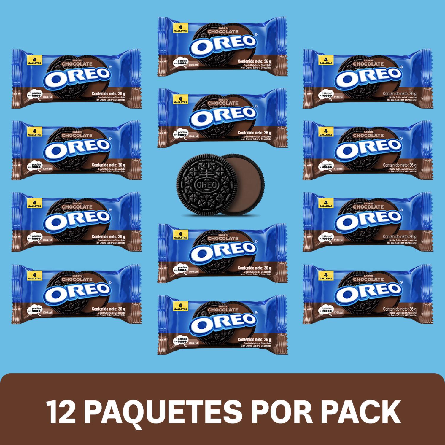 Galletas Oreo Chocolate de chocolate rellenas con crema sabor chocolate en formato 12pack x 36g c/u 4 galletas cada uno para llevar donde quieras