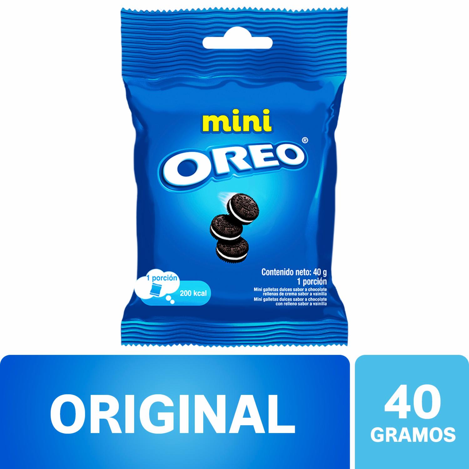- Galletas Oreo Originales Mini de chocolate rellenas con crema sabor vainilla en formato individual de 40g para llevar donde tu quieras