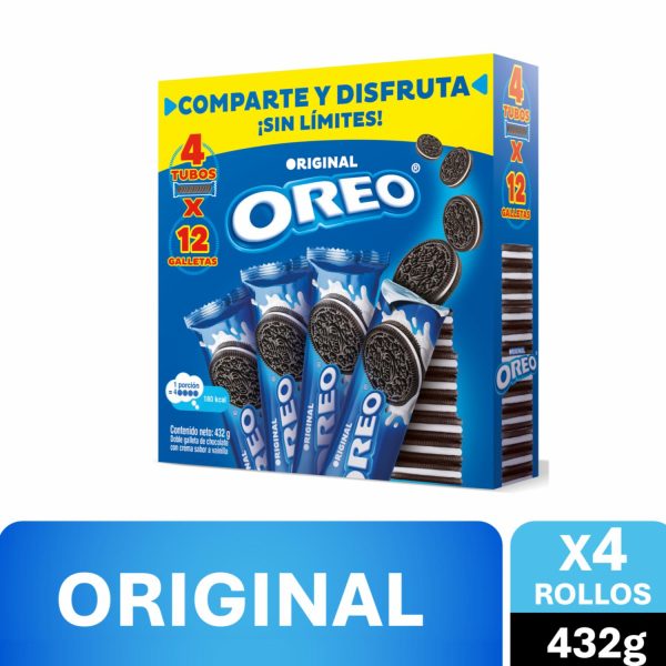 - Galletas Oreo Originales de chocolate rellenas con crema sabor vainilla en formato 4pack x 108g cada uno para llevar donde quieras