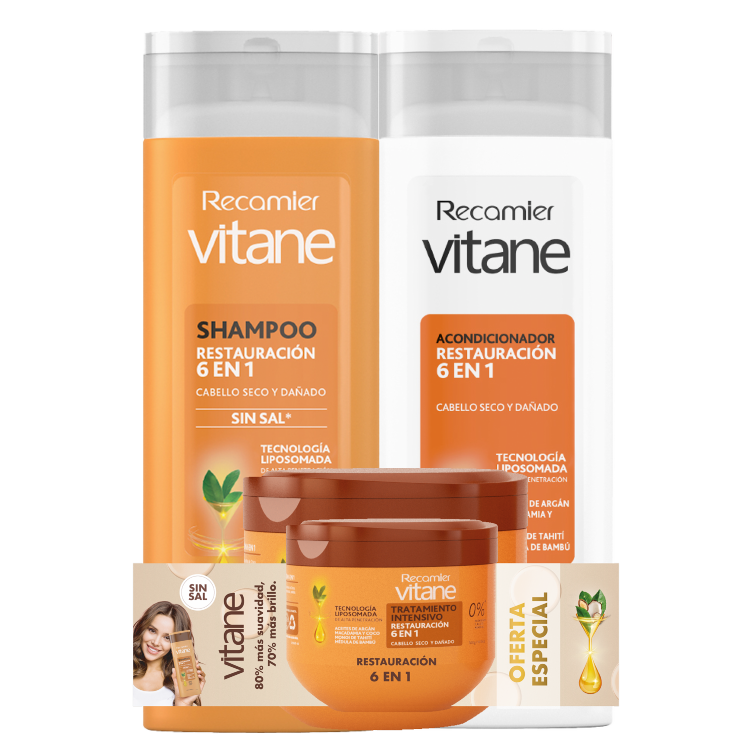 Pack Capilar Shampoo + Tratamiento + Gratis Acondicionador Restauración 6 En 1 VITANE 1100 ML
