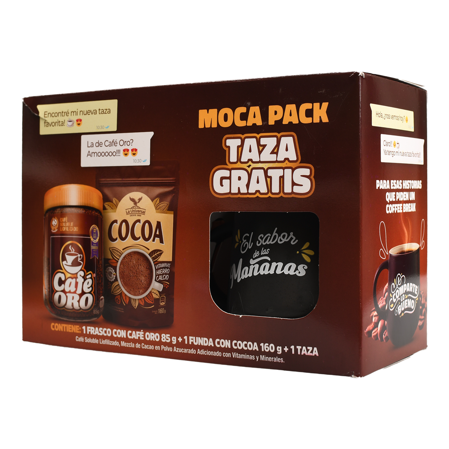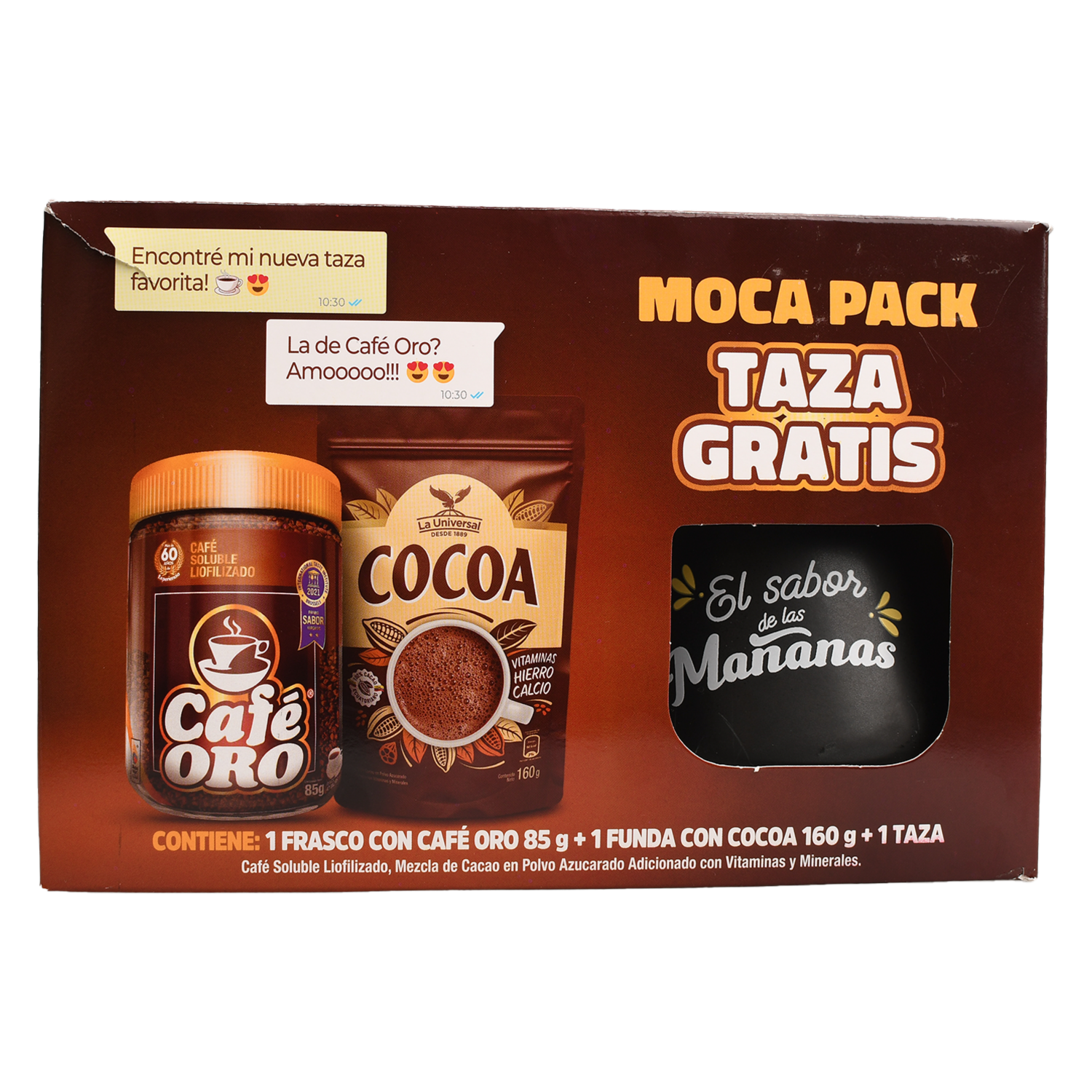 Pack De Café Cocao Y Taza ORO 85 G + 160 G – ORO. Disponible en nuestros locales. Precio y stock pueden variar según la tienda.
