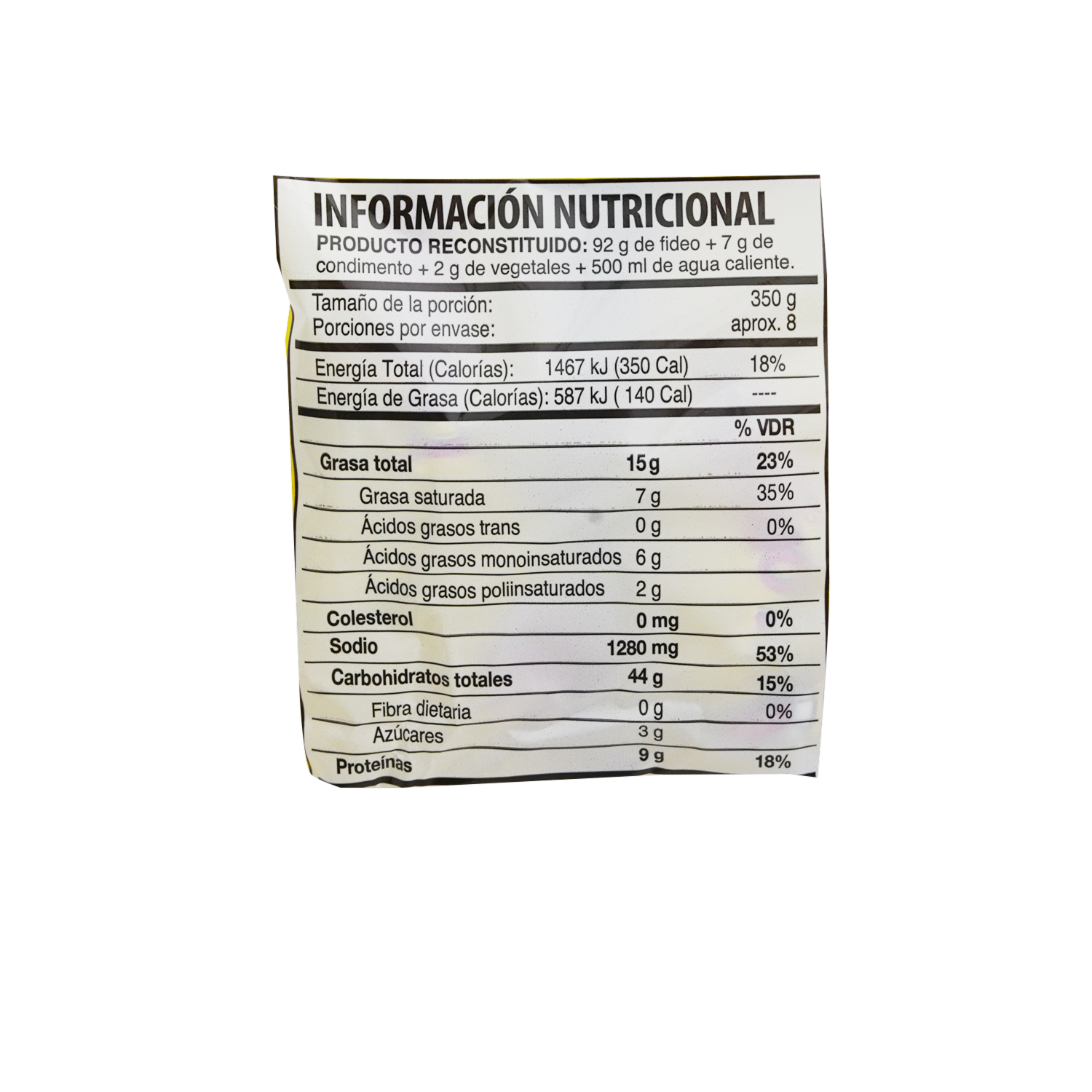 - Fideo instantáneo con vegetales deshidratados, listo en 3 minutos