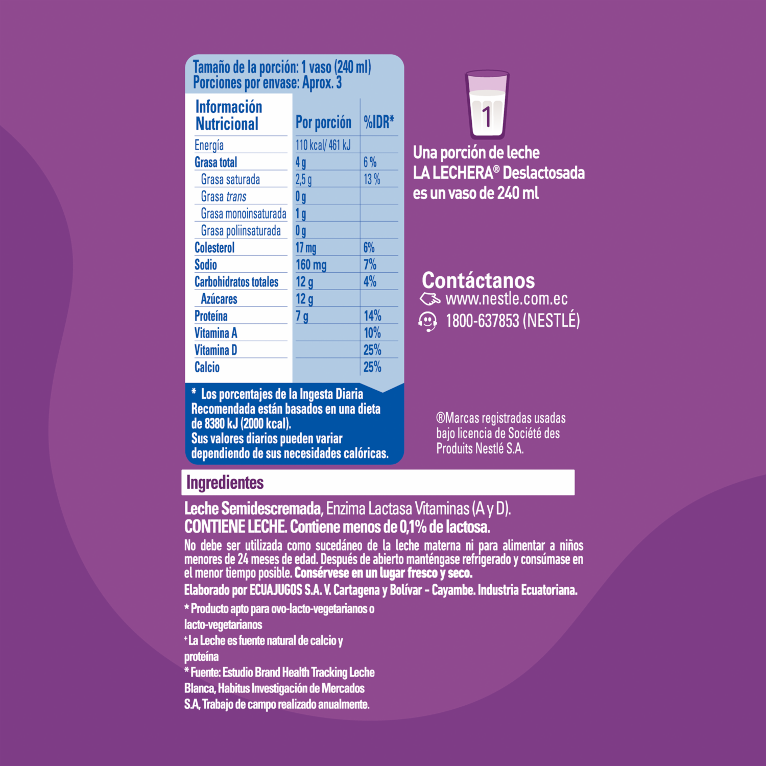 Es una leche semidescremada, 98% libre de lactosa, adicionada vitaminas A y D, las cuales ayudan a mejorar la absorción del calcio