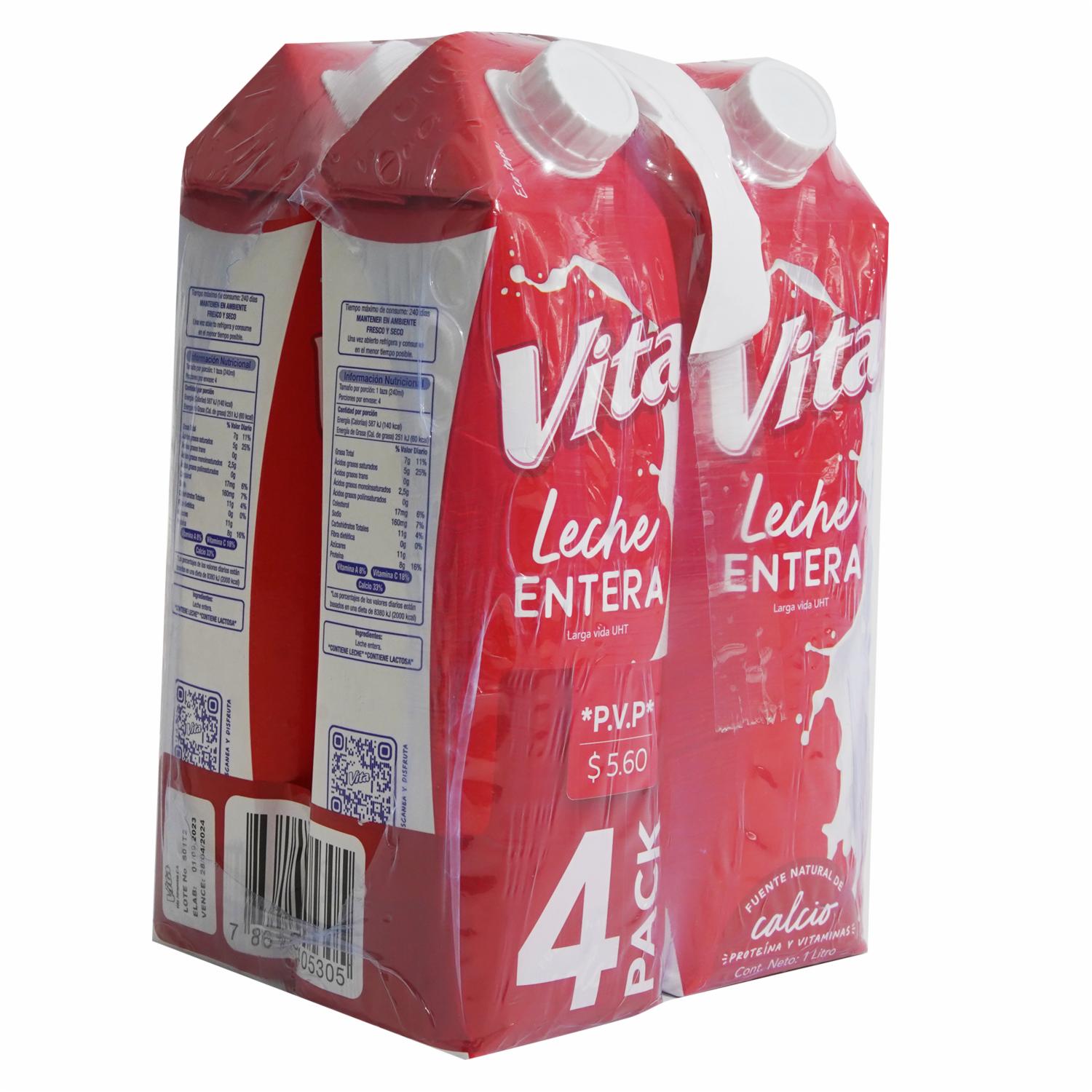 Pack De Leche Entera VITA 4 X 1000 Ml