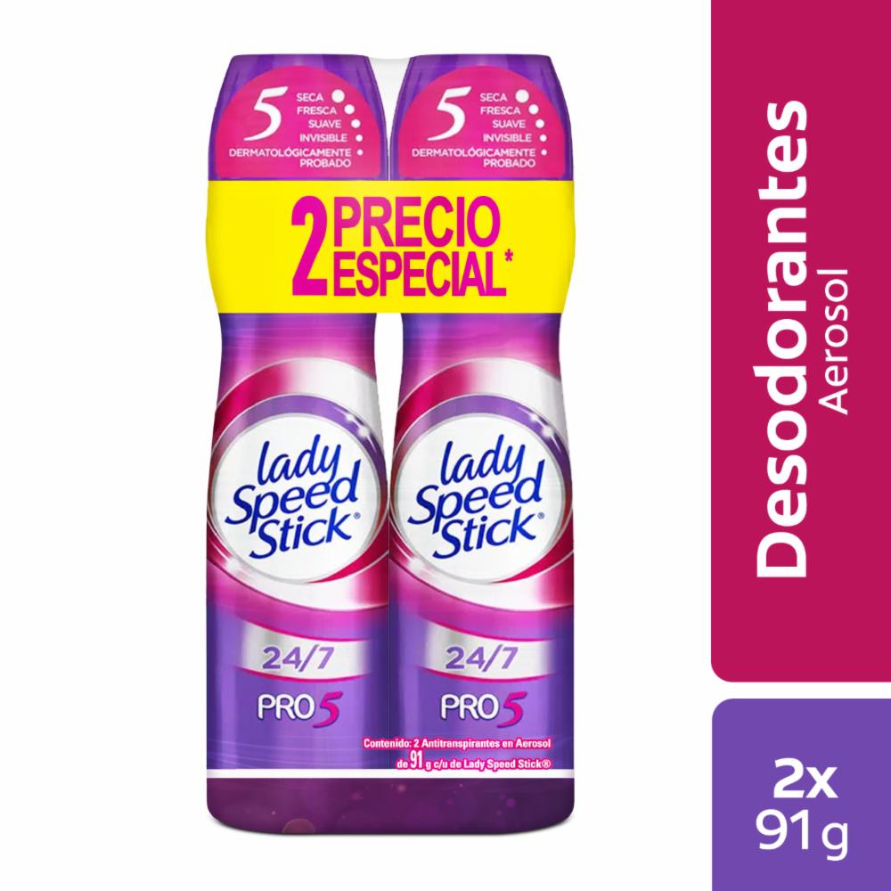 Desodorante En Aerosol Para Mujer Pro 5 En 1 LADY SPEED STICK 2 X 91 G