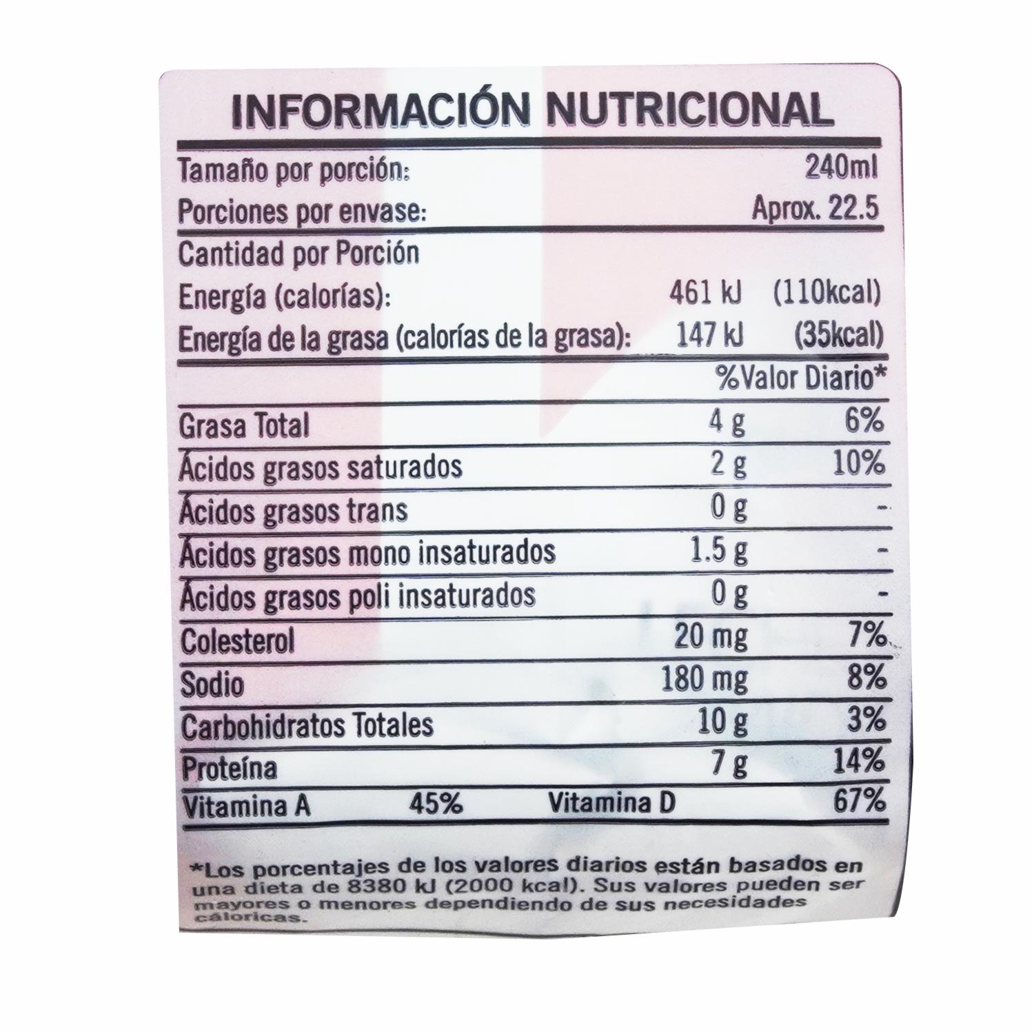 - Una excelente leche que aporta la misma cantidad de proteínas, azúcares en forma de lactosa y calcio que la leche entera, sin embargo es bajo en grasa