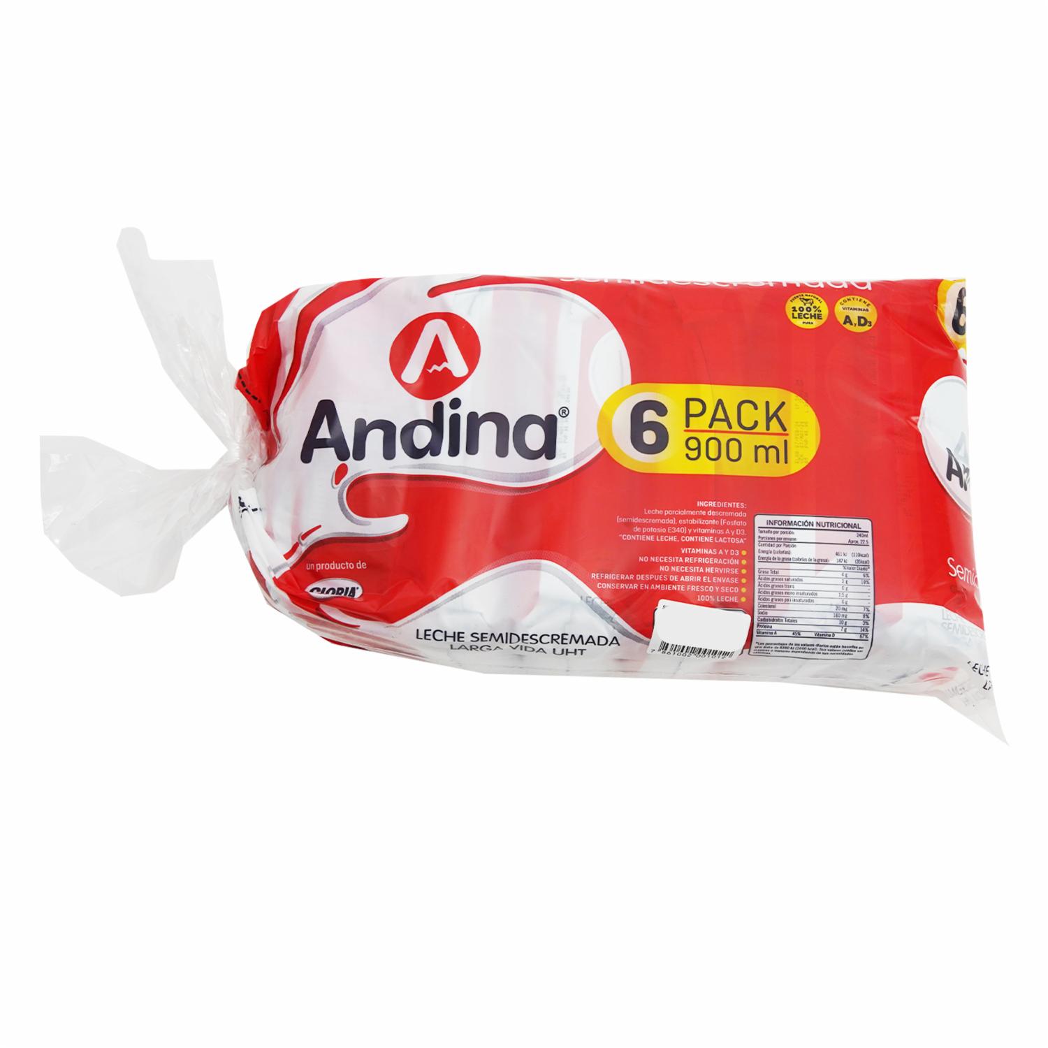 Pack Leche Semidescremada En Funda ANDINA 6 X 900 Ml