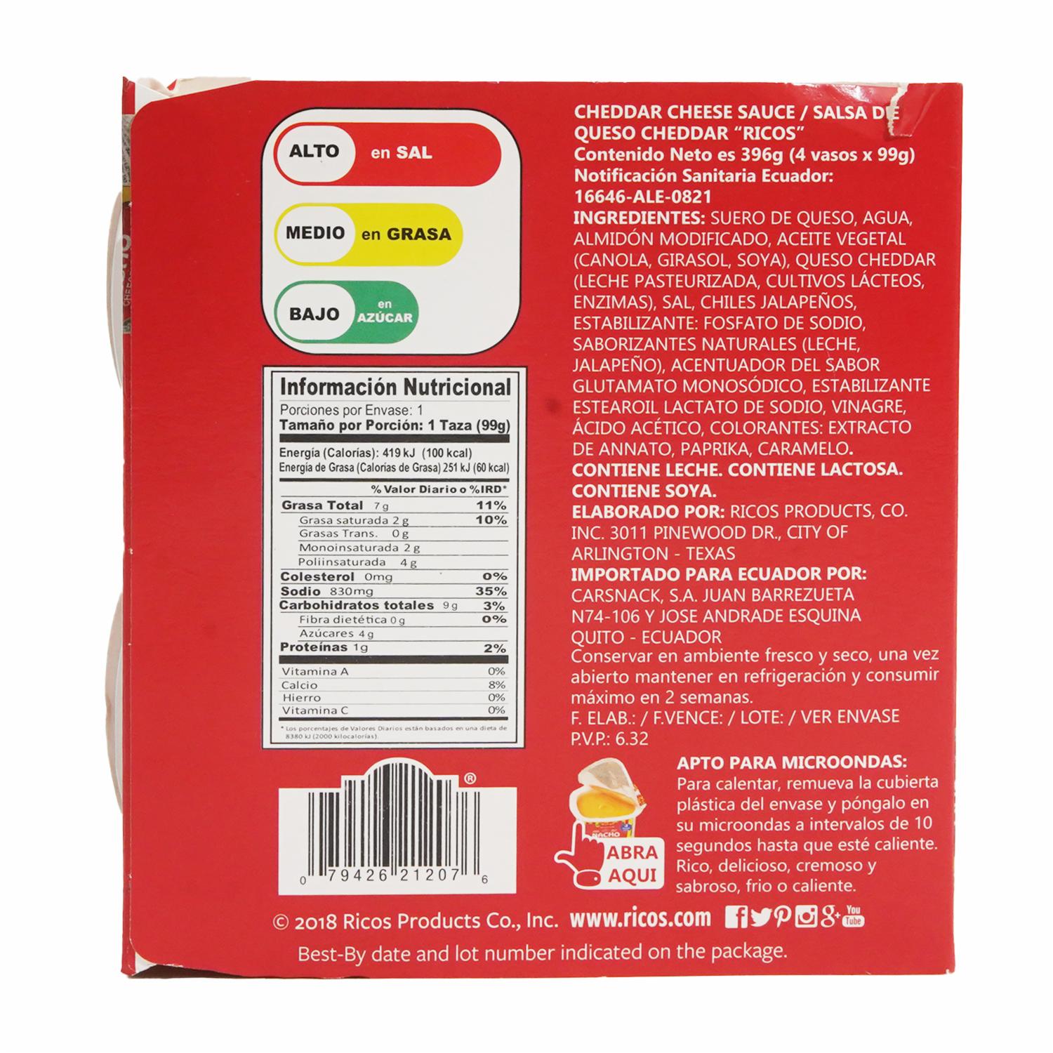 • Salsa de queso para nachos, apto para calentar en microondas, sin gluten