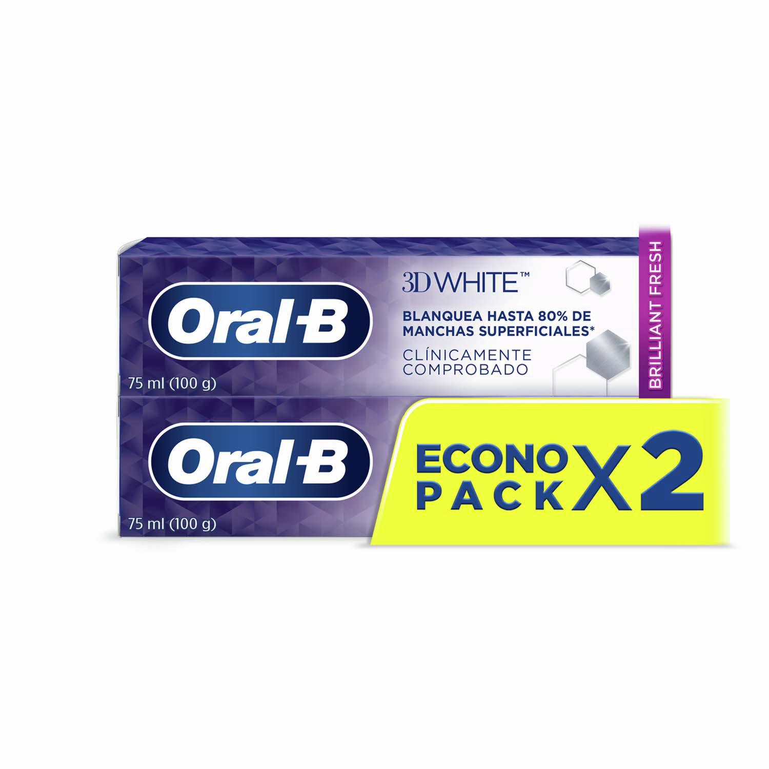 - Oral-b 3dw Brilliant Fresh Elimina Hasta El 80% De Las Manchas Superficiales Y Está Clínicamente Probado. Esta Pasta Ofrece Una De Las Tecnologías De Blanqueamiento Oral-b Más Avanzadas. Tiene Flúor Para Cuidar Y Proteger El Esmalte Dental Y Prevenir Problemas Como Caries Y Otras Enfermedades Bucales. Recomendamos Cepillarse Los Dientes Al Menos Tres Veces Al Día Y Complementar Su Rutina Con Los Productos Oral-b
