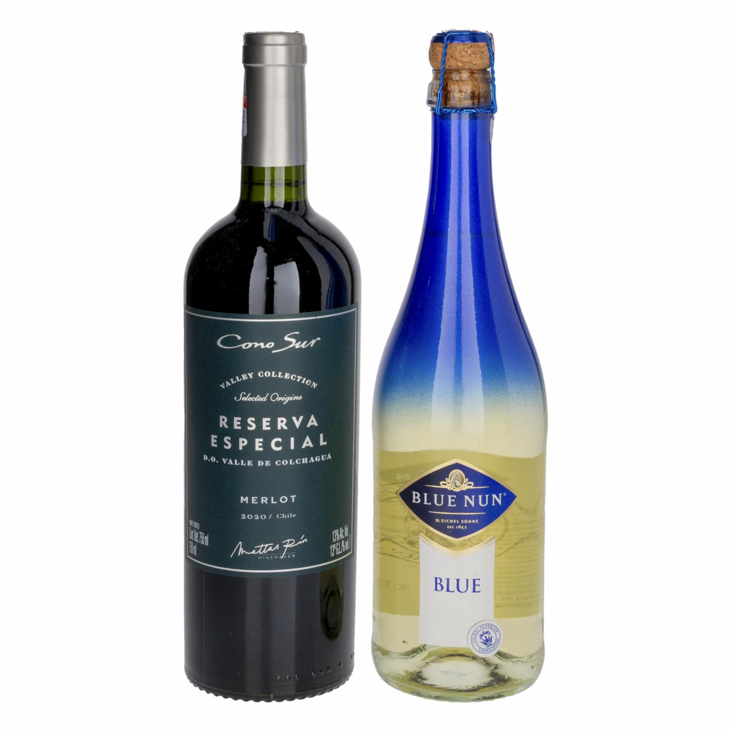 La combinación perfecta para sorprender: un Merlot suave y frutal junto al frescor clásico del Blue Nun. Dos estilos distintos para disfrutar en cualquier ocasión, ya sea una cena especial o una reunión casual. Calidad y variedad para brindar con sabor