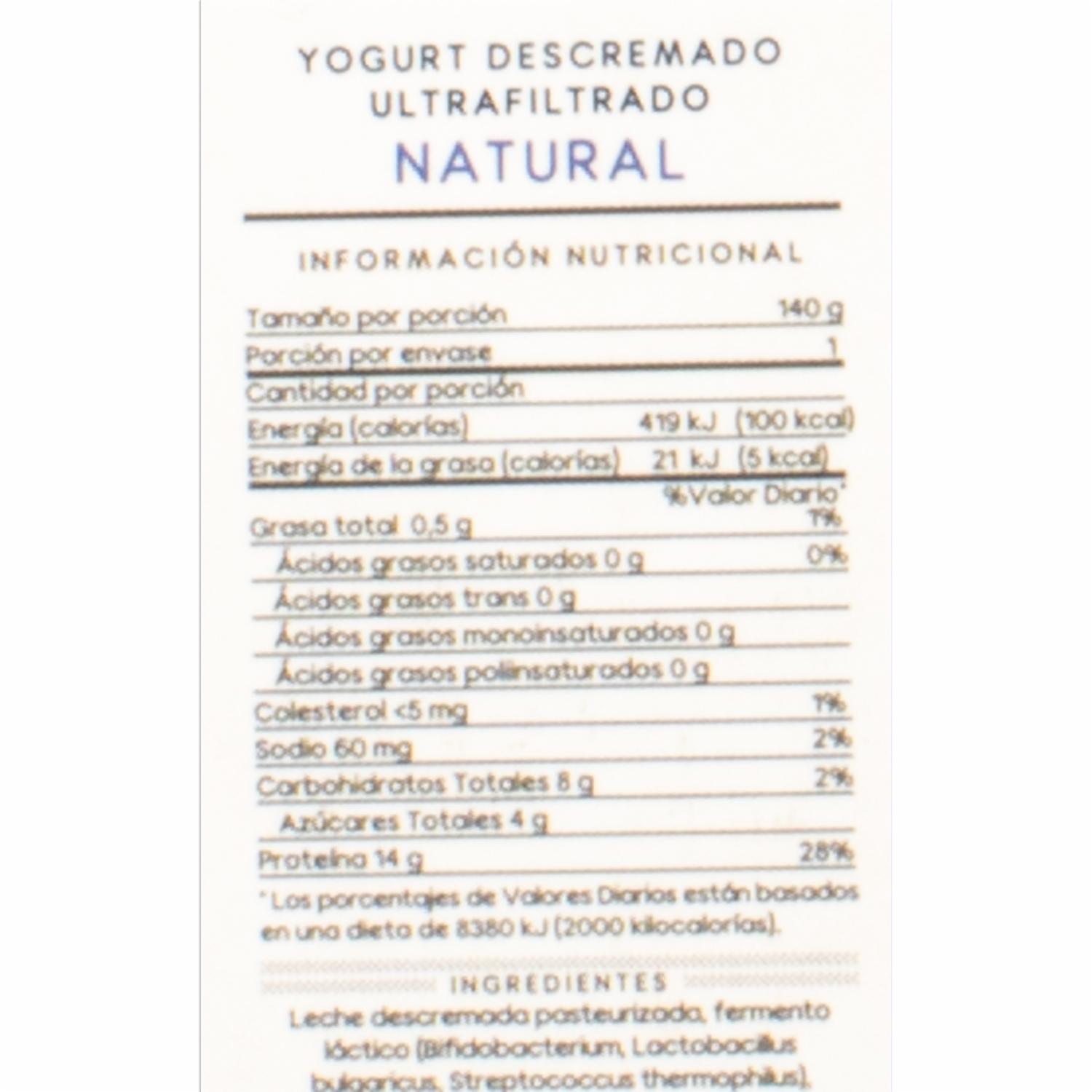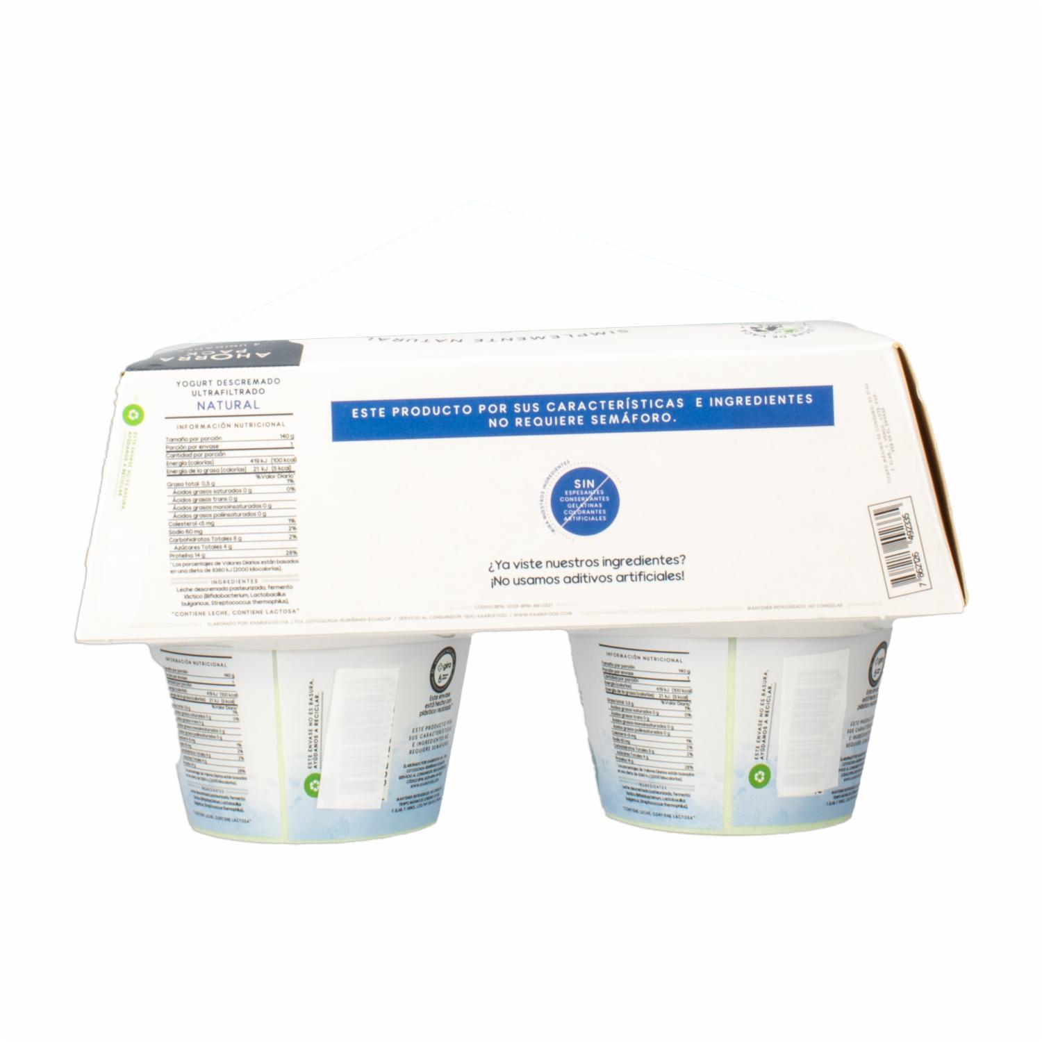 - Mantén una dieta saludable con el pack de yogurt griego descremado ultrafiltrado natural. Con su textura cremosa y sabor suave, es perfecto para consumir solo, con frutas o como base para tus recetas favoritas