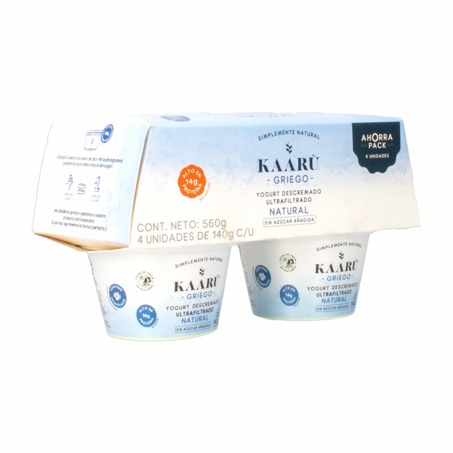 Pack Yogurt Griego Descremado Ultrafiltrado Natural KAARÙ 4 Uds X 140 G