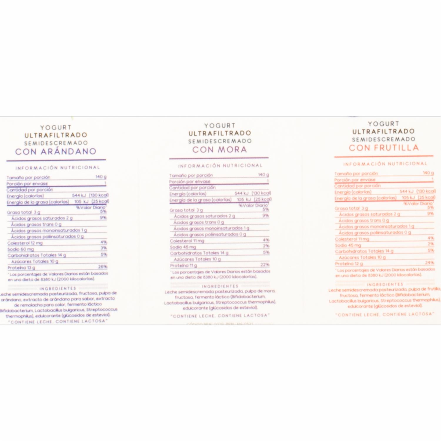 Deléitate con el sabor del pack de yogurt griego ultrafiltrado semidescremado de frutos rojos. Este yogurt combina la cremosidad del yogurt griego con el delicioso sabor de los frutos rojos, ideal para un snack saludable y lleno de energía