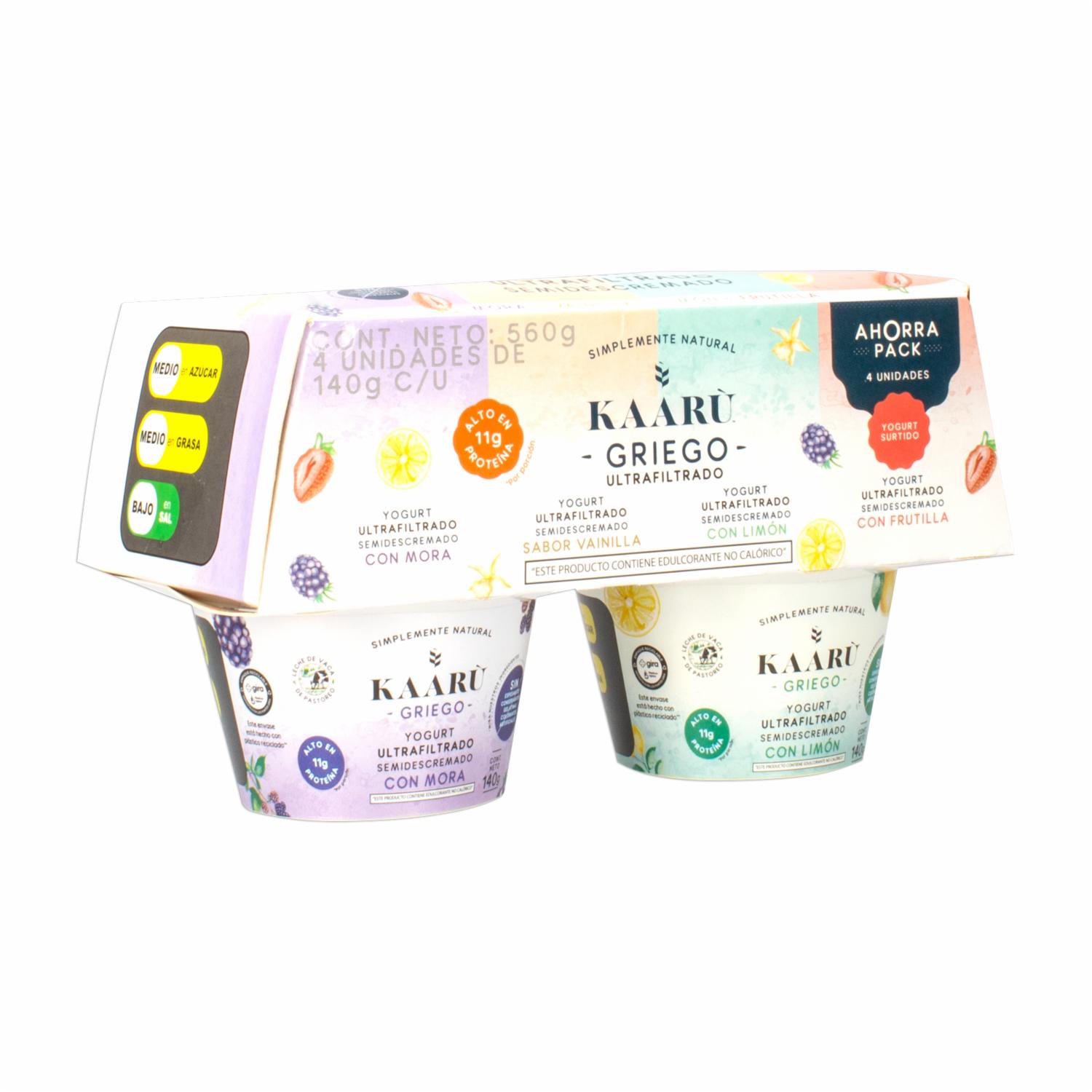 Pack Yogurt Griego Ultrafiltrado Semidescremado Surtidos KAARÙ 4 Uds X 140 G