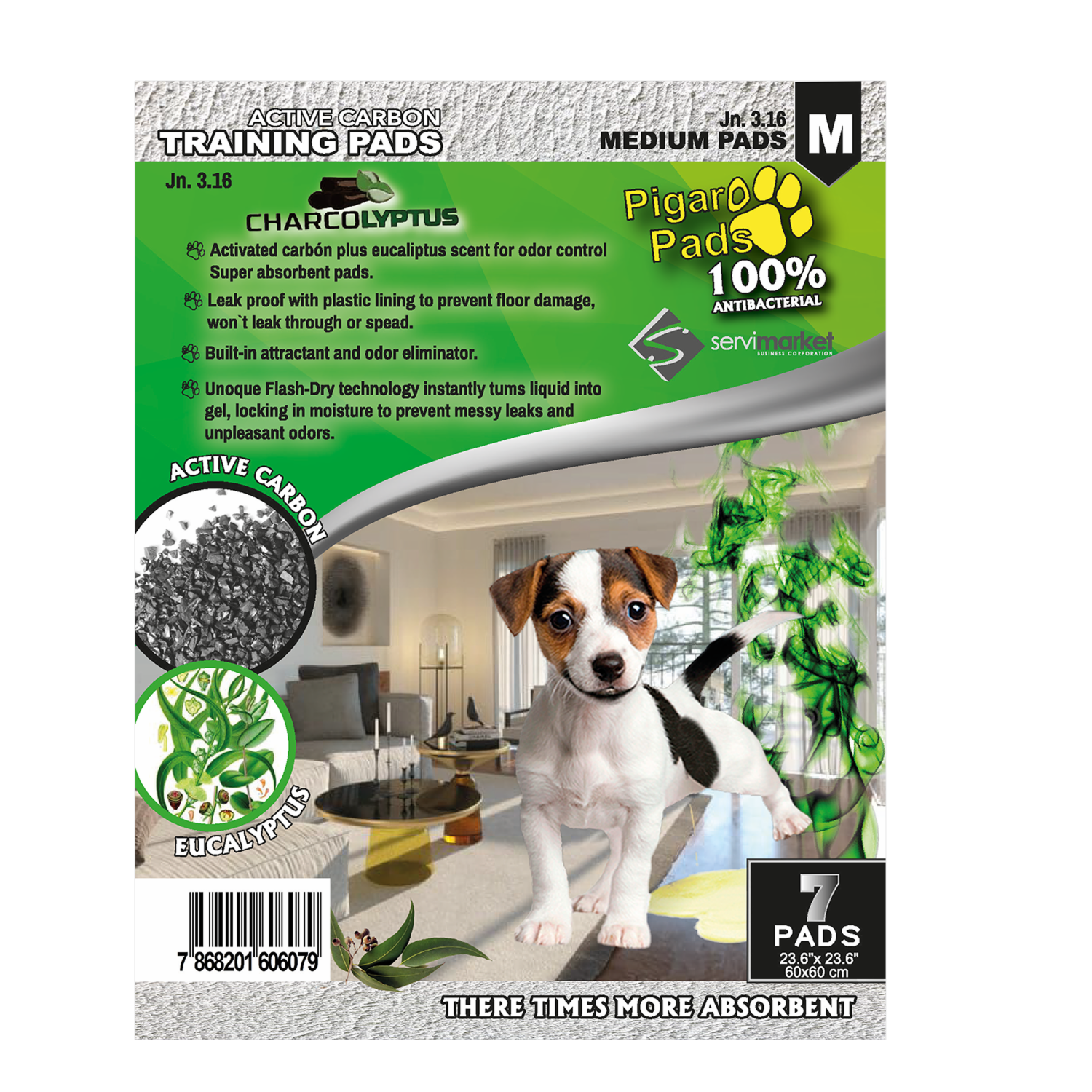 Pads De Mascotas Sanitario Con Carbón Y Eucalipto PIGARO PADS 20 Cm X 15 Cm X 6 Cm