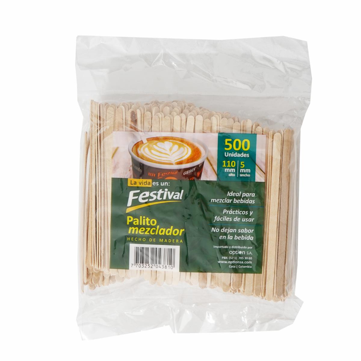 Palito Mezclador De Madera Para Bebidas 110 Mm X 5 Mm FESTIVAL 500 Uds