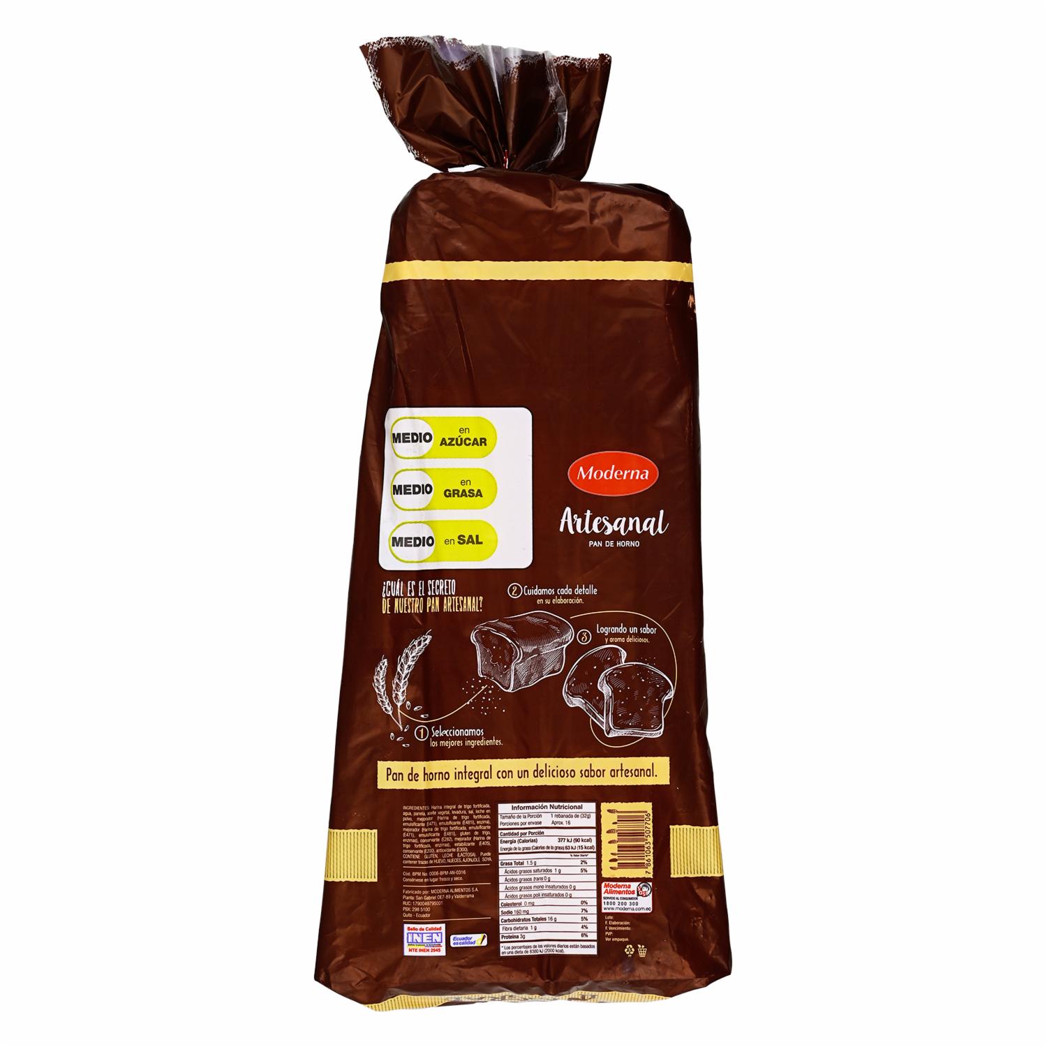 Pan Artesanal Integral MODERNA 500 G – MODERNA. Disponible en nuestros locales. Precio y stock pueden variar según la tienda.