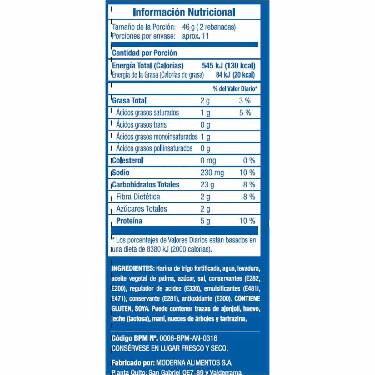 Pan Blanco Economás MODERNA 500 G