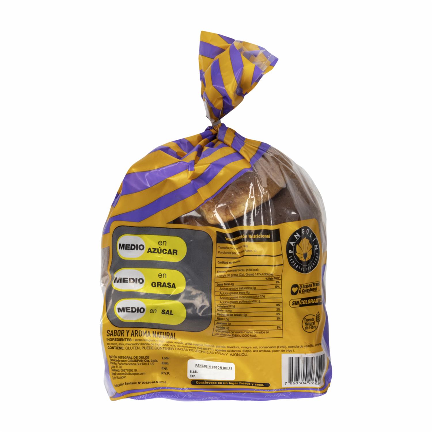 Pan Botón Dulce Integral PANGOLÍN 350 G