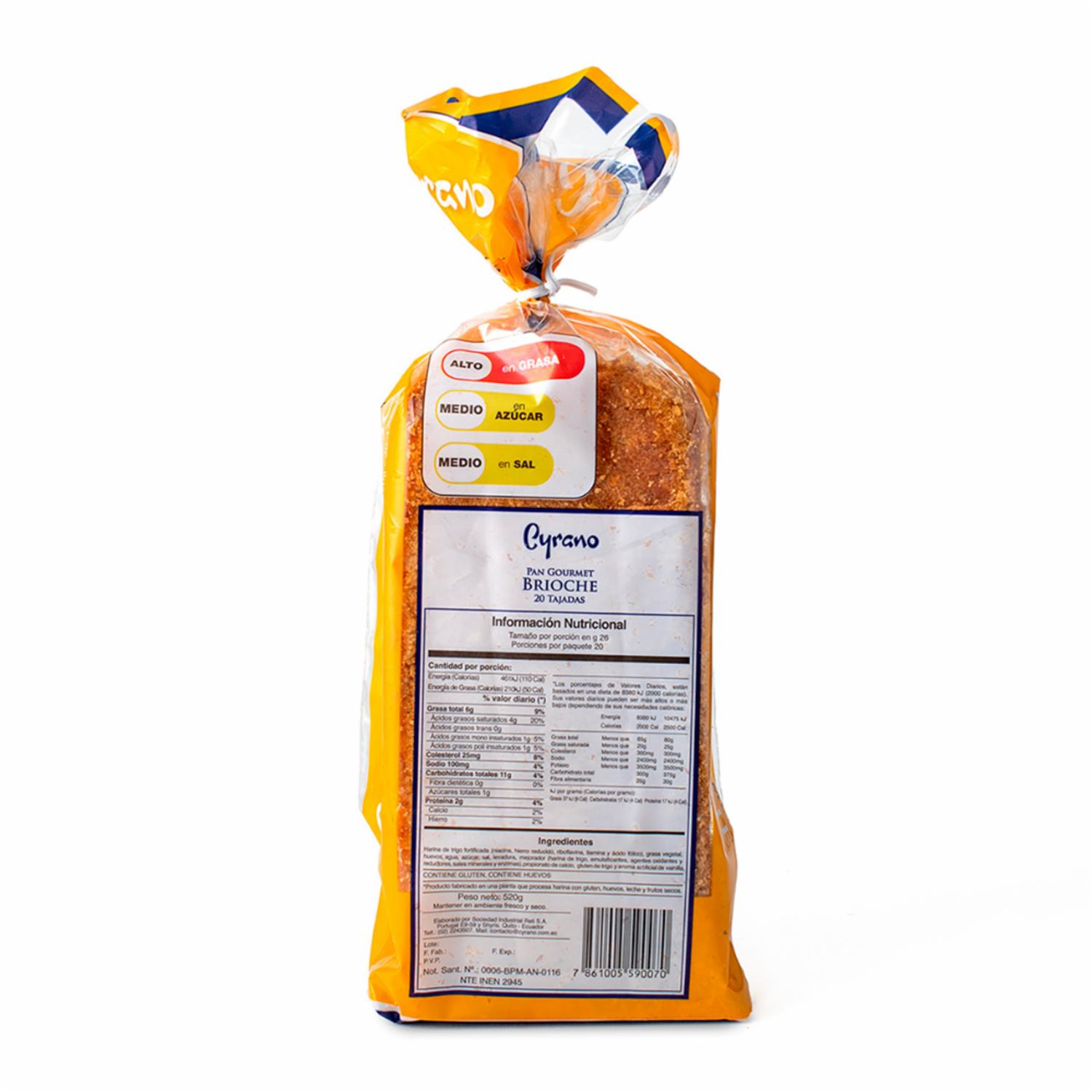 Pan Gourmet Brioche CYRANO 520 G – CYRANO. Disponible en nuestros locales. Precio y stock pueden variar según la tienda.