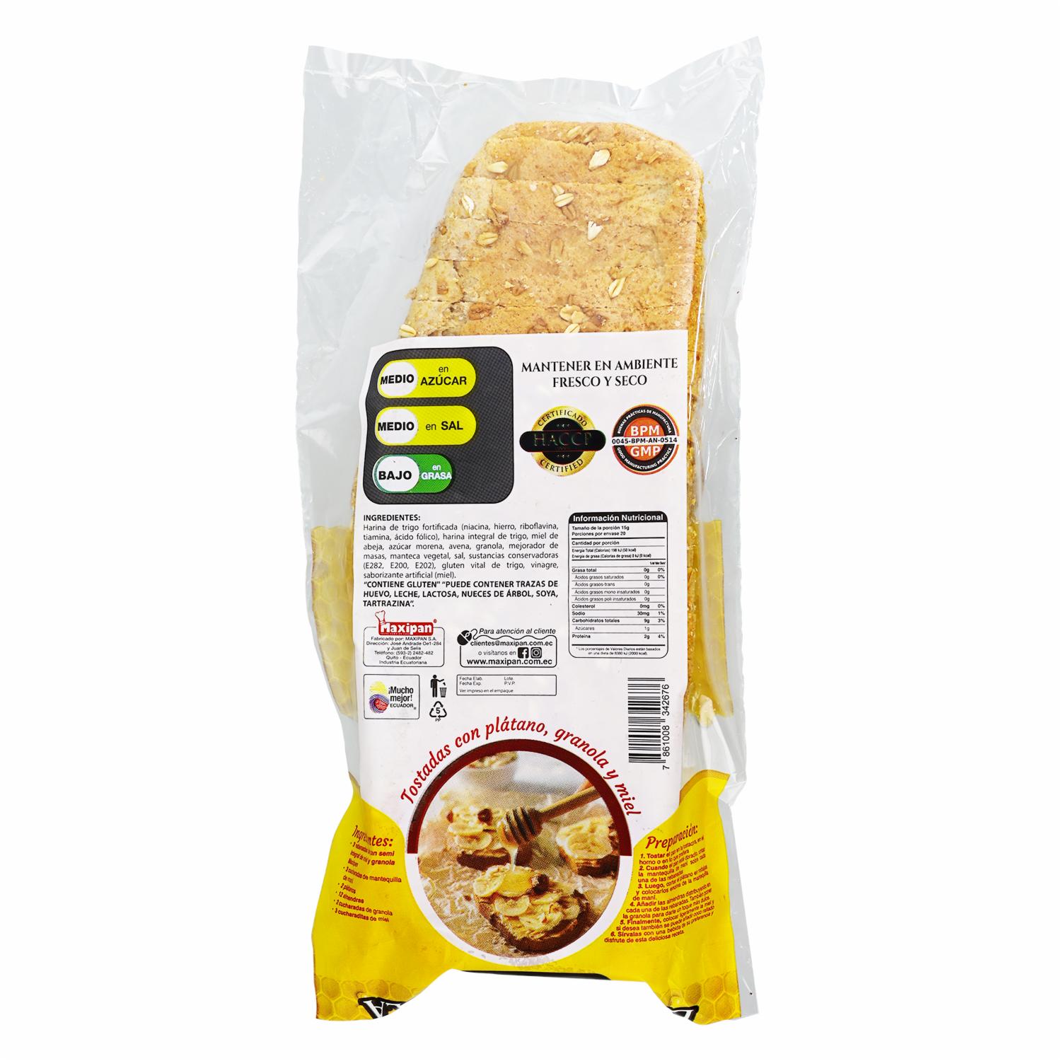 Pan De Dulce Integral Sin Levadura/Miel MAXIPAN 300 G