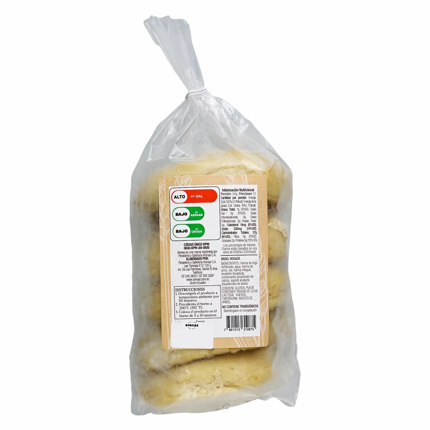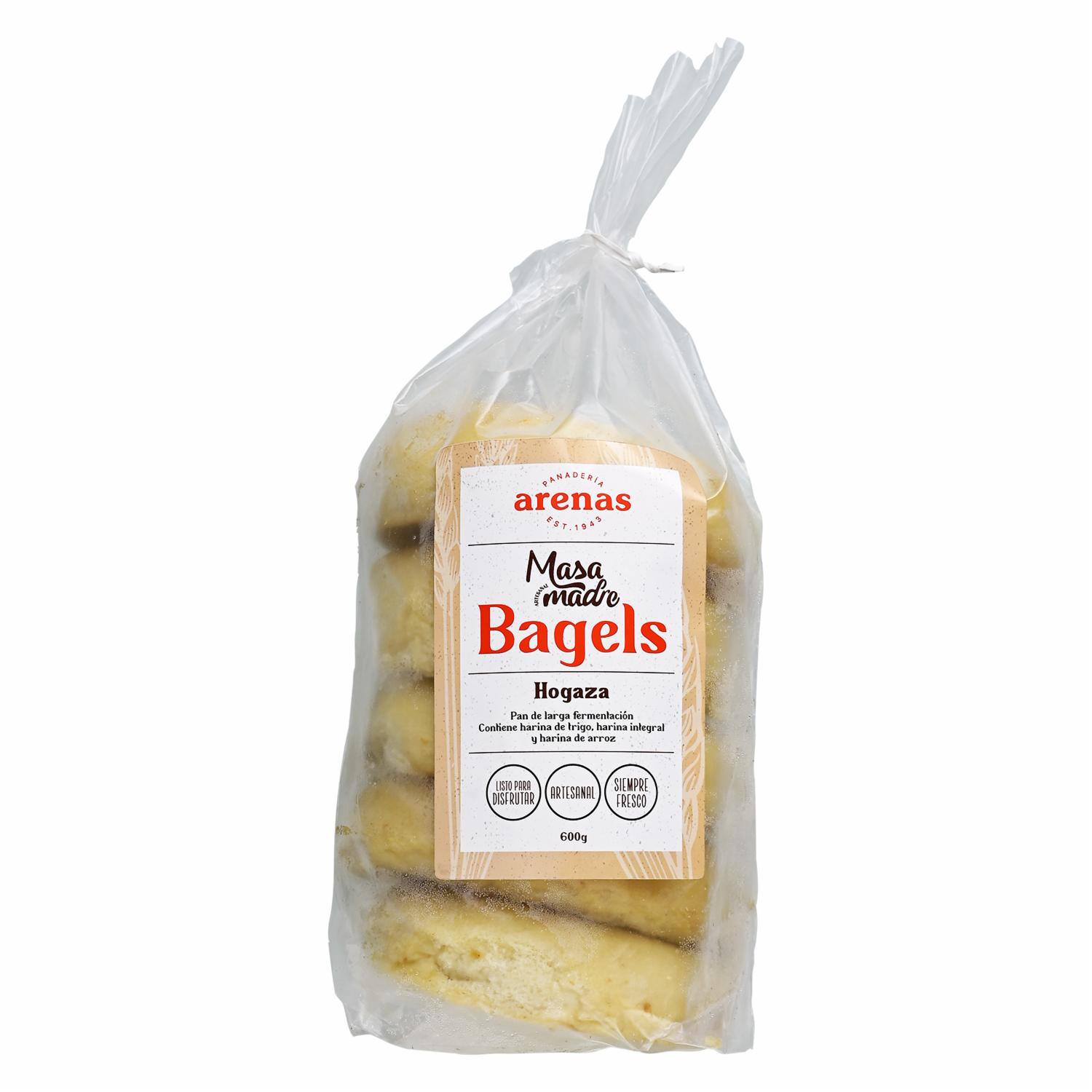 - El Pan de Masa Madre Bagels Hogaza Congelado ARENAS en presentación de 600 g es una opción deliciosa y auténtica para disfrutar de pan de masa madre en forma de bagels