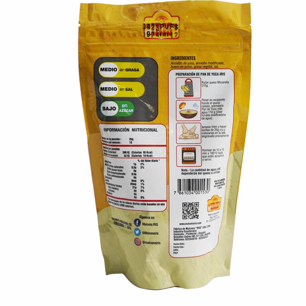 Pan De Yuca Premezcla Sin Gluten IRIS 250 G – IRIS. Disponible en nuestros locales. Precio y stock pueden variar según la tienda.