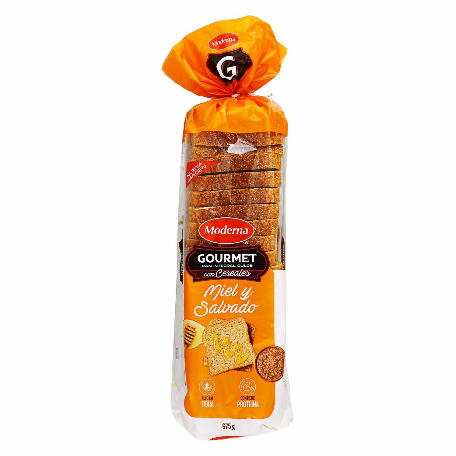 Pan Gourmet Empacado De Miel Y Salvado De Trigo MODERNA 675 G