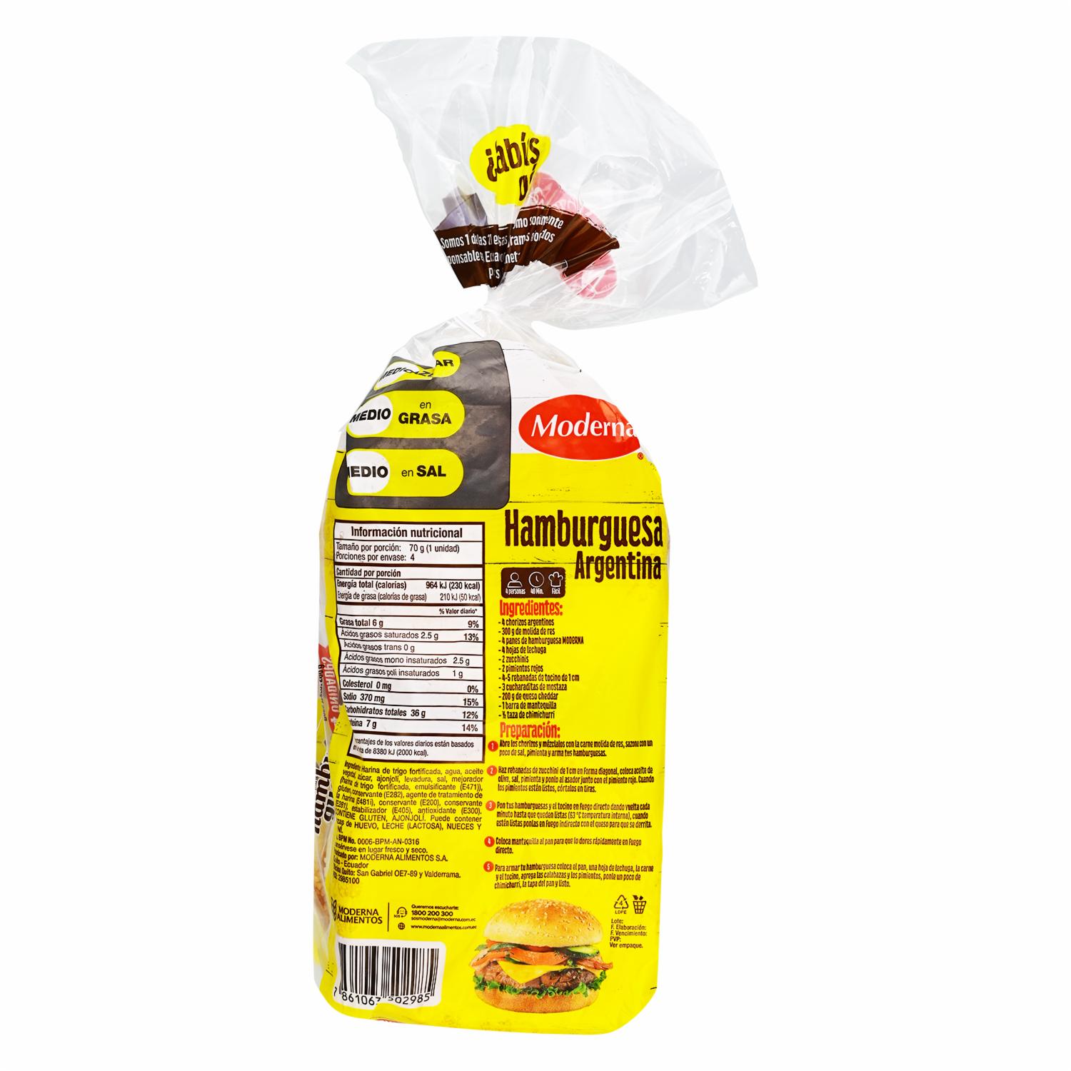 Pan Hamburguesa Grande MODERNA X 4 Uds