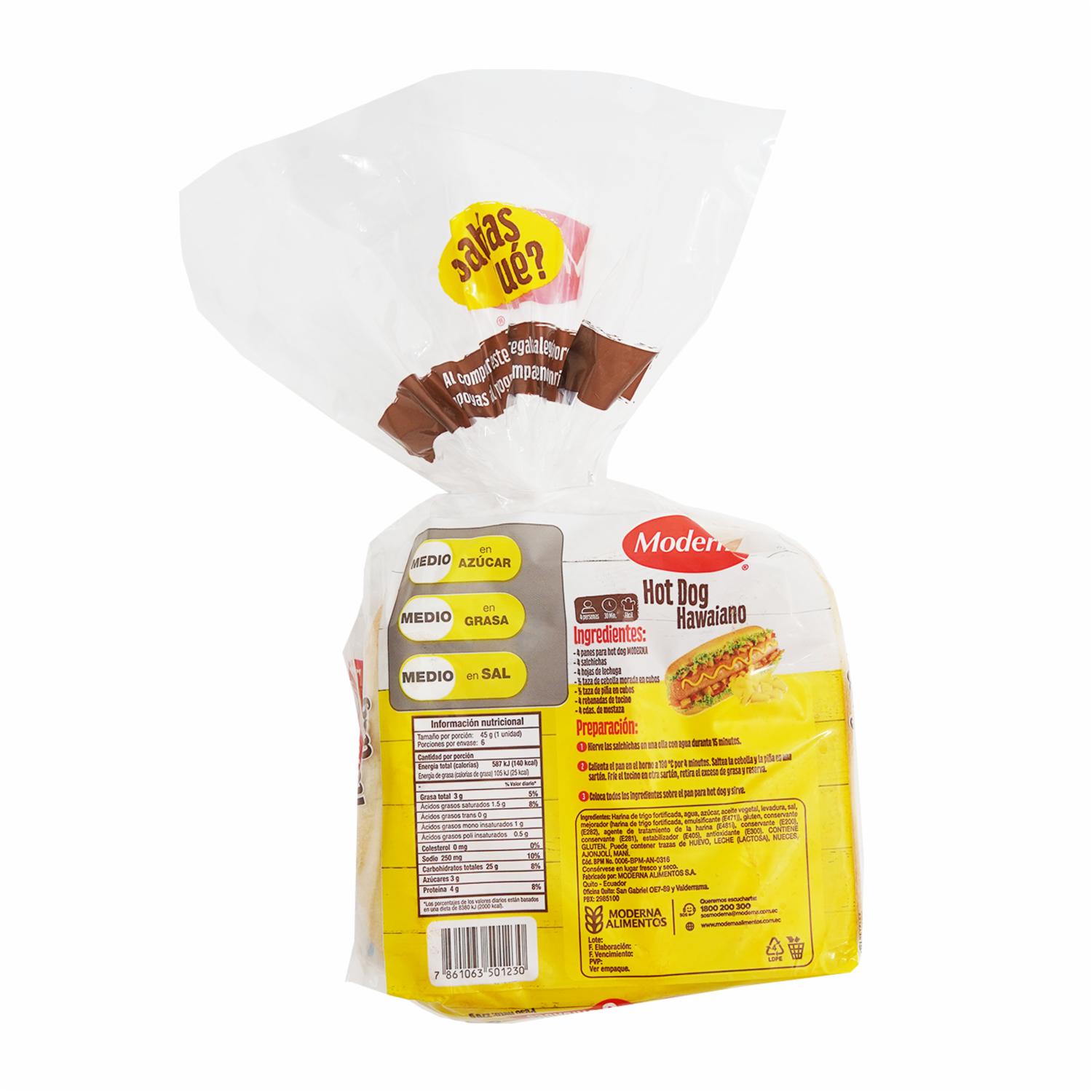consultando preciosPan Hot Dog Fiesta MODERNA 270 G – MODERNA. Disponible en nuestros locales. Precio y stock pueden variar según la tienda.