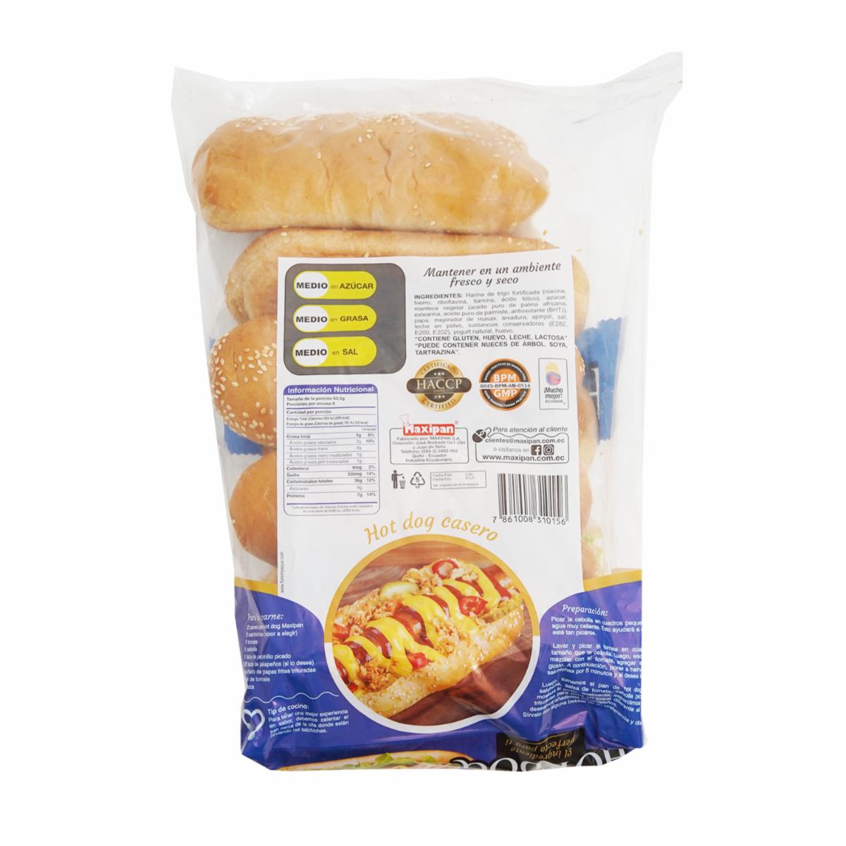 Pan Hot Dog X 8 Uds MAXIPAN 500 G – MAXIPAN. Disponible en nuestros locales. Precio y stock pueden variar según la tienda.