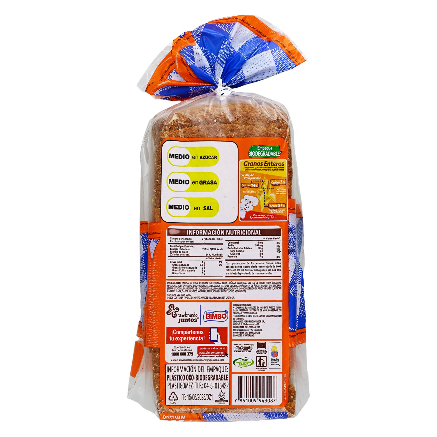 consultando preciosPan Integral Medio Molde BIMBO Funda – BIMBO. Disponible en nuestros locales. Precio y stock pueden variar según la tienda.