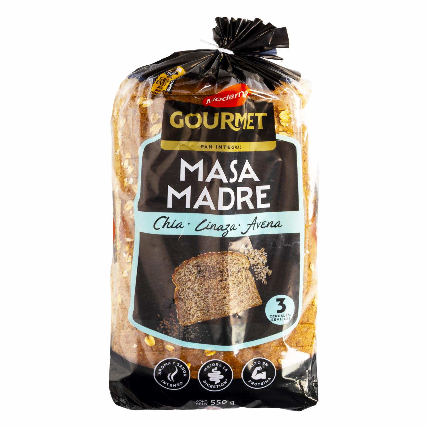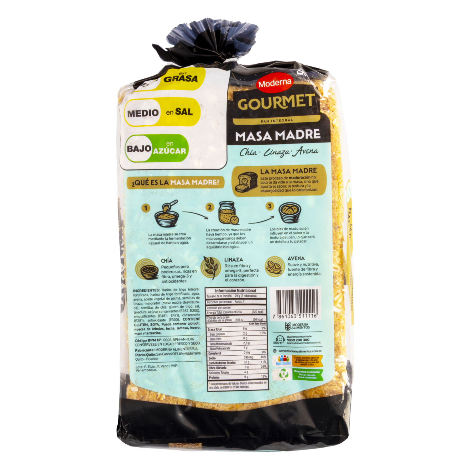 Pan Integral Rebanado De Masa Madre Chia Linaza Y Avena Gourmet MODERNA 550 G